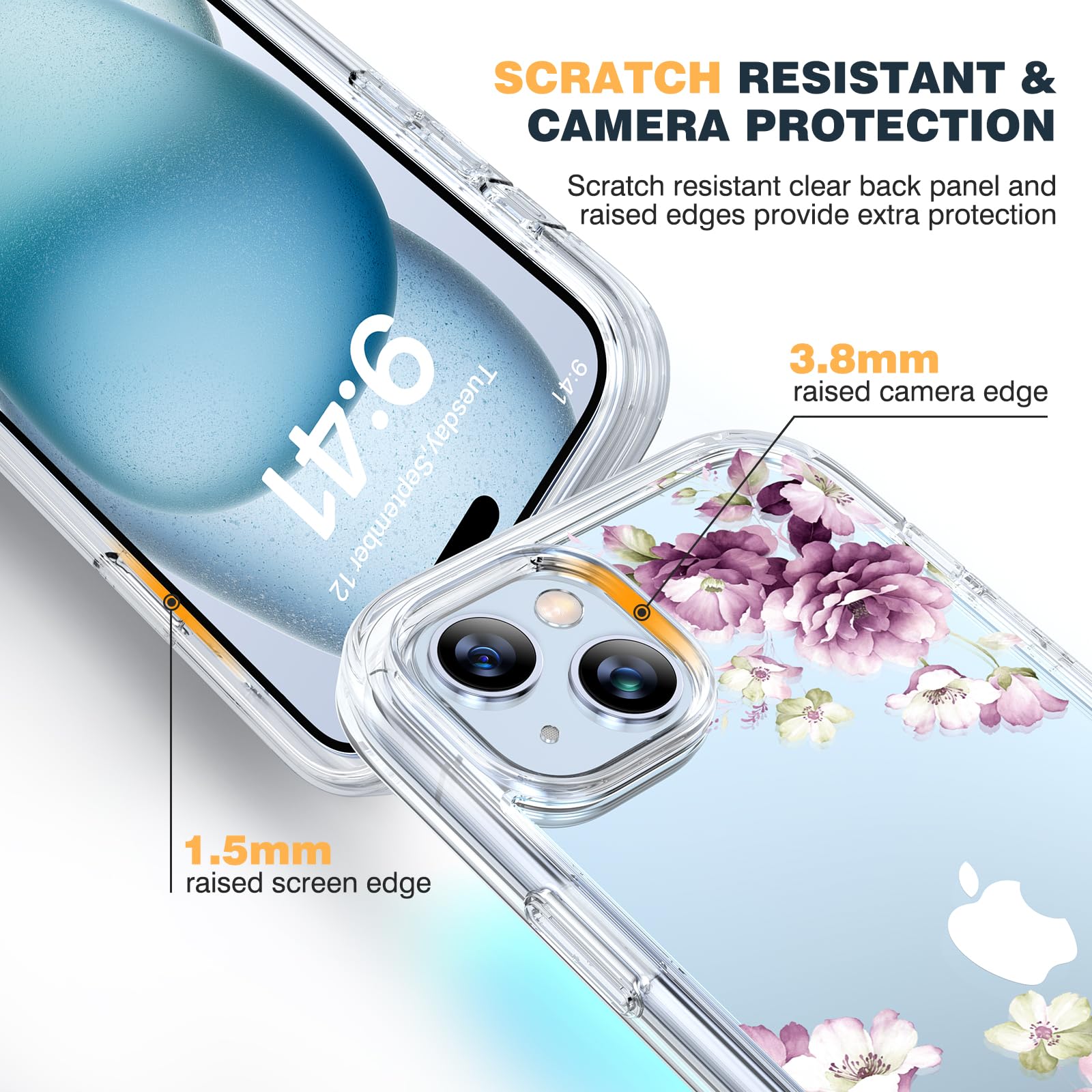 【360 Degree Full Body Rugged Protection】 Dual layer provides 360°full body rugged protection. Soft TPU shock absorption and raised 4 corners surround your phone and protect it from accidental drops and falls. With hardness tempered glass camera lens protector designed for iPhone 15 Plus to protect your camera and brings you the original of beauty to every photo and video.