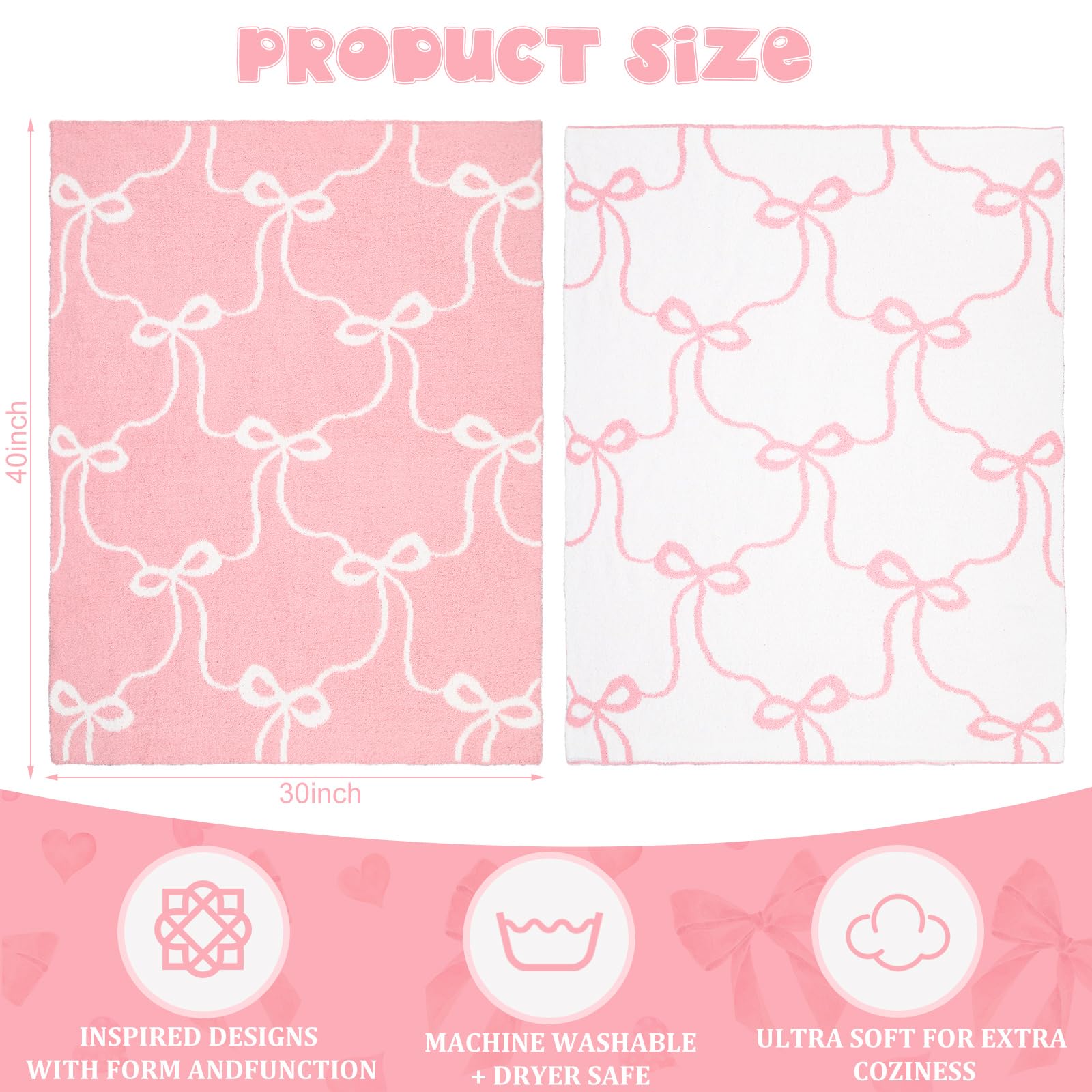 Features: Quality and Lightweight Comfort: Despite its plushness and warmth, this pink bow blanket boasts an impressively lightweight quality. So whether you're curling up for a nap or lounging on your couch, this easy-to-carry, soft blanket ensures your comfort without weighing you down. Versatile Usage: This pink bow blanket throw is not merely a warming tool but an exquisite accessory for your living room or bedroom. It's nice for daily TV watching, napping on the sofa, or any space where you want to stay warm while adding a stylish touch to your decoration. Specifications: Material: Corduroy Color: Pink Size: 30 x 40 In Package includes: 1 x pink bow blanket Notes: Manual measurement, please allow slight errors on size. The color may exist a slight difference due to different screen displays.