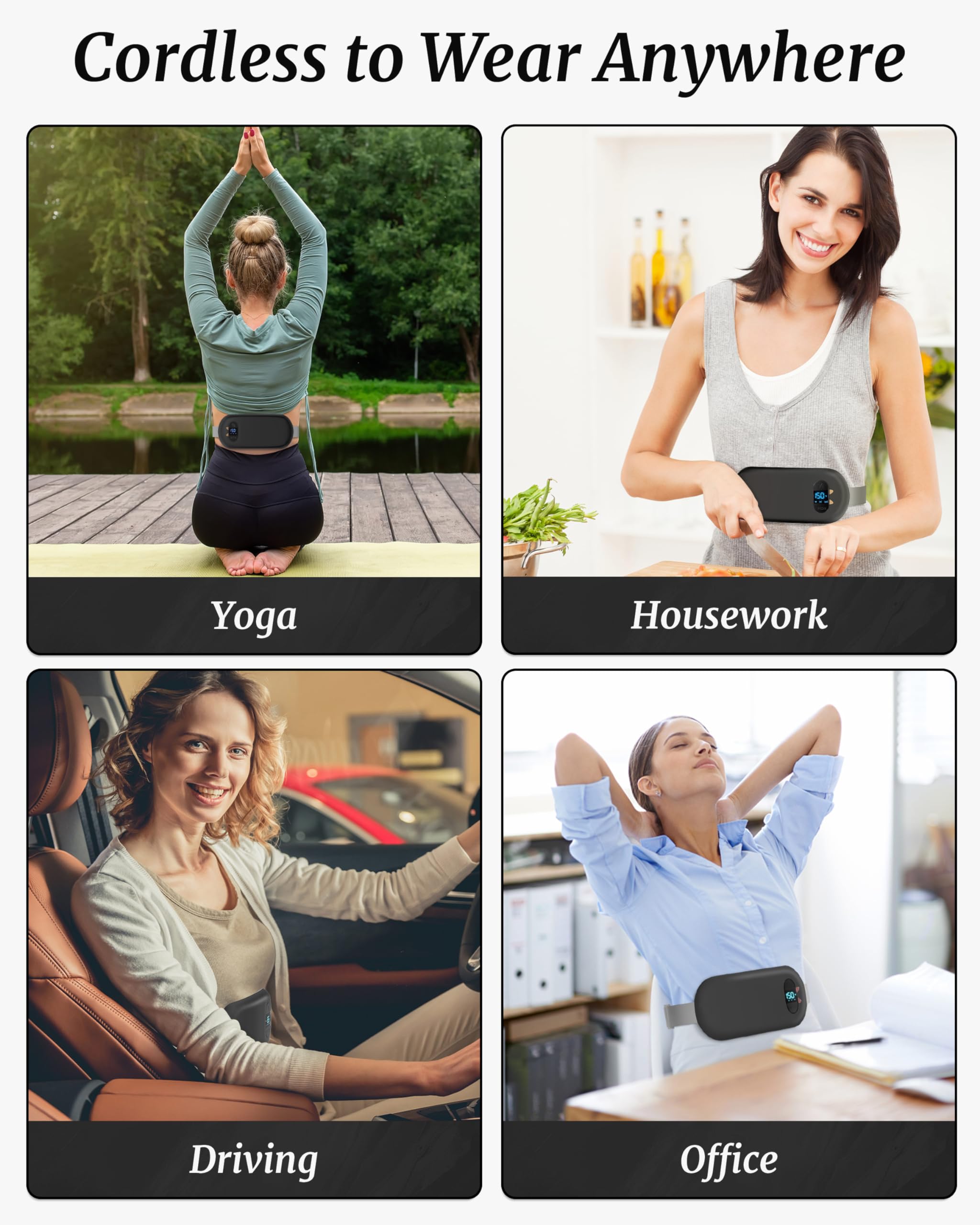 Best Gifts for Her: The lightweight period cramp simulator could be hidden underneath a shirt invisibly. 25.5-55 inches adjustable elastic belt fits different waist sizes. So you can wear it indoors or outdoors to move around freely. Unique self care and relaxation gifts for women, girlfriends, daughters, moms on birthdays, valentines day, anniversaries, and Christmas.