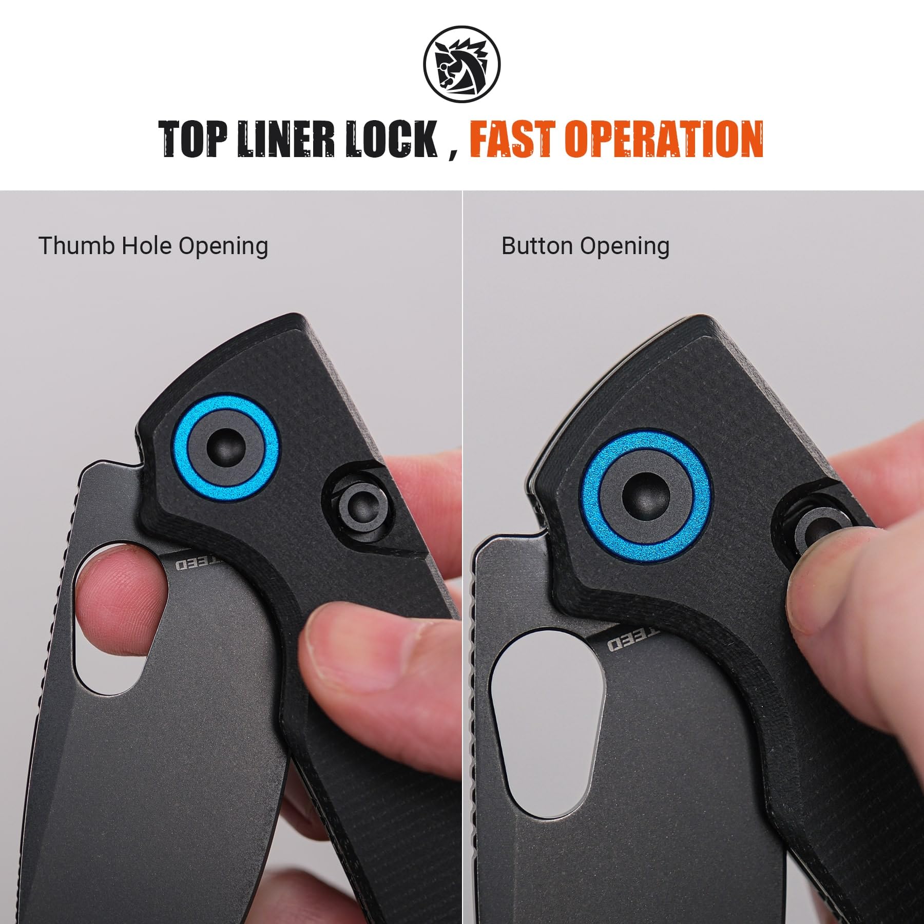 ❆Robust Top Liner Lock & Sizeable Thumb hole Open❆ The Top Liner Lock provides smooth, one-handed operation and a secure lock-up, keeping your fingers safe from the blade path during use. The nearly hidden lock bar is secured inside the handle with a stainless-steel plate and further reinforced by a solid steel backspacer. The Porcupine offers effortless one-handed opening and closing, thanks to its large thumbhole design.