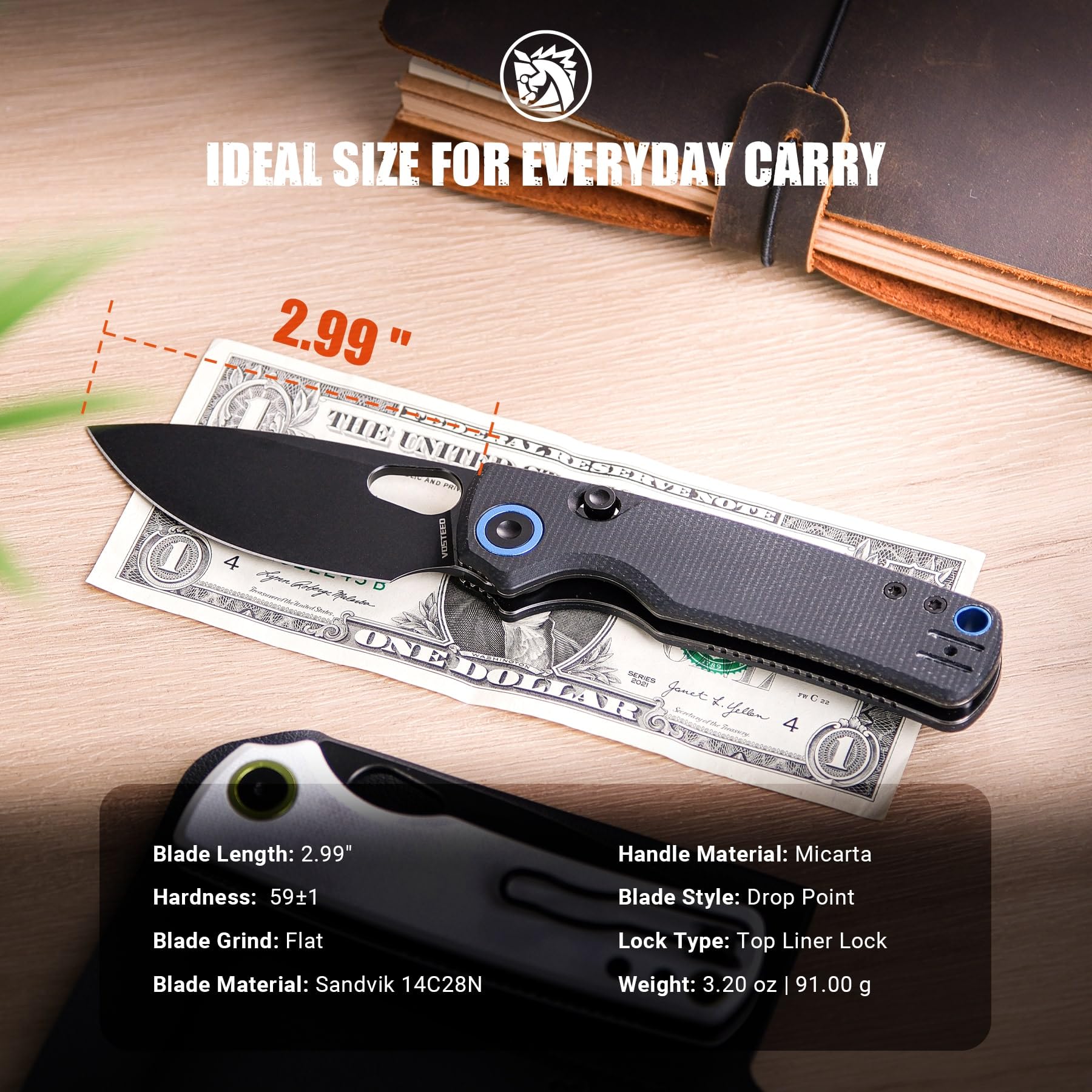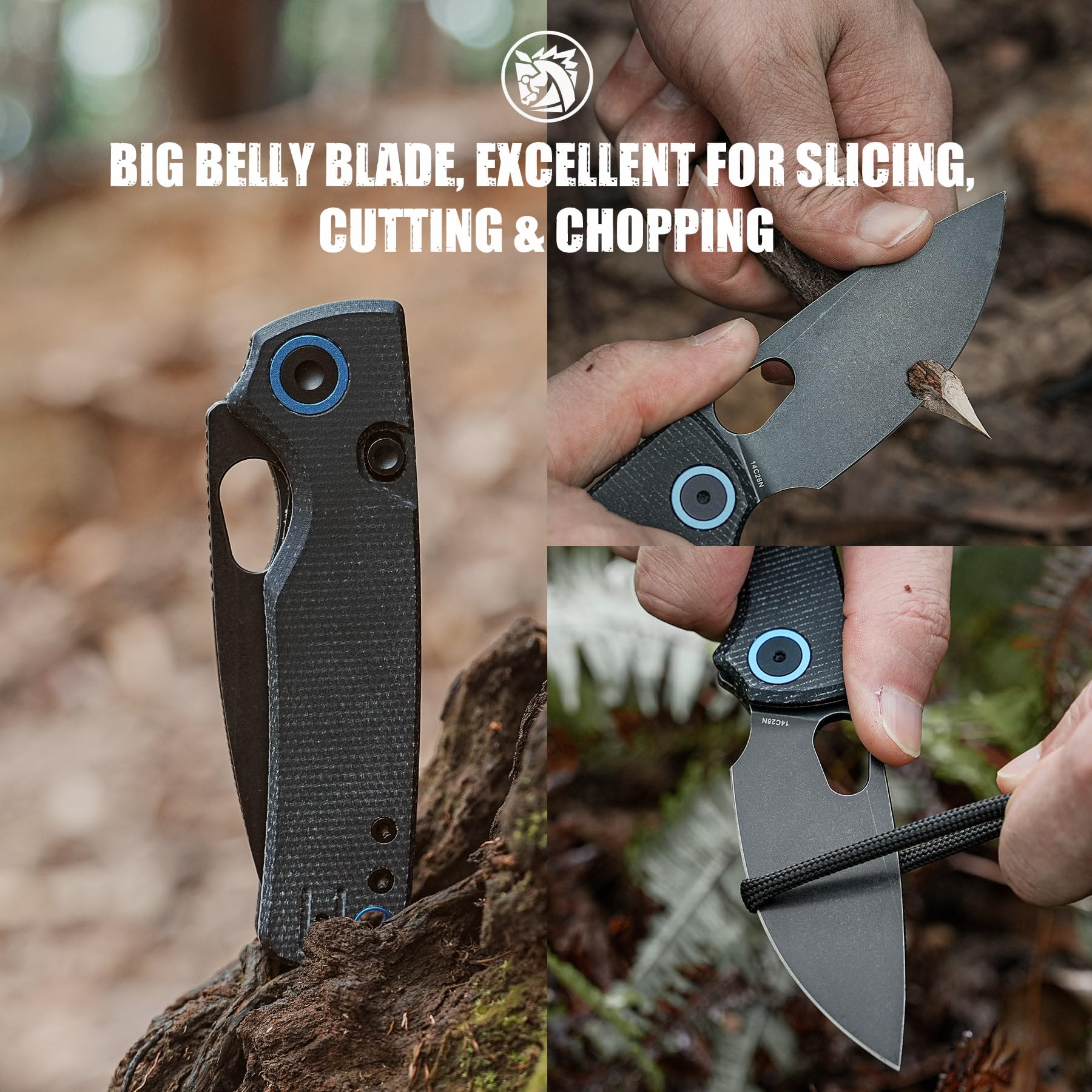 ❆Pointy Tip and Big Belly Blade❆ The generous blade belly makes slicing tasks-such as cutting meat, fruits, and vegetables—an absolute breeze. The pointy tip delivers precision for tasks like opening packages, cutting ropes, and slicing through cardboard. The 2.99" 14C28N blade offers excellent edge retention, corrosion resistance, and ease of sharpening.