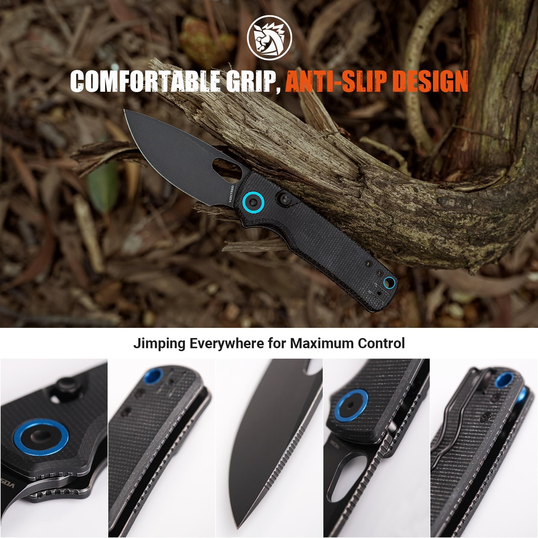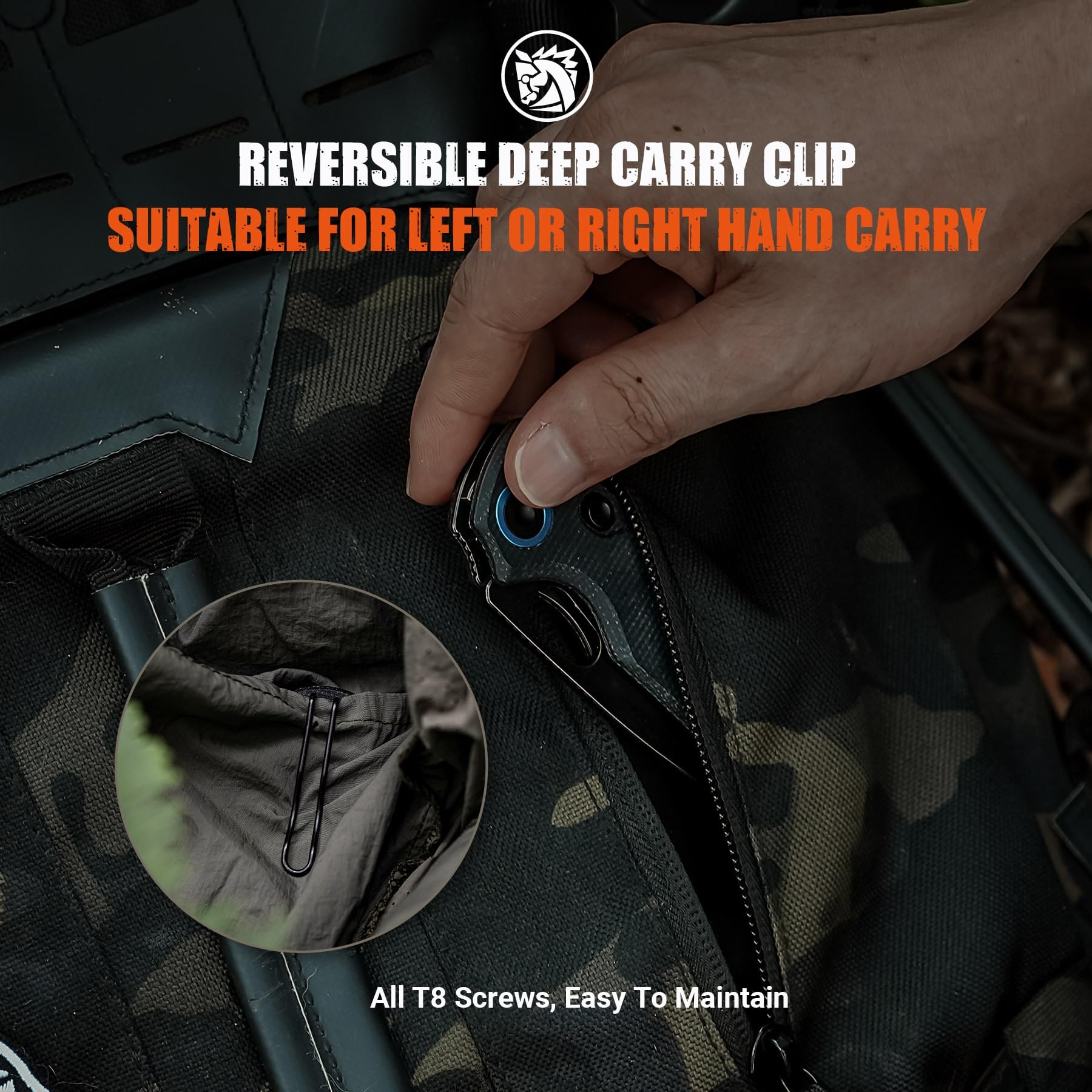 ❆Detailed Features❆ Jimping ensures maximum grip and control at all key touchpoints. A stabilizing pin reinforces the handle, preventing deformation over time. All T8 screws simplify maintenance, requiring just a single screwdriver. Internally milled liners reduce weight while maintaining strength for EDC and hard use. The large thumbhole allows smooth opening, even for users with large hands or gloves. The recessed button minimizes accidental openings, enhancing overall safety.