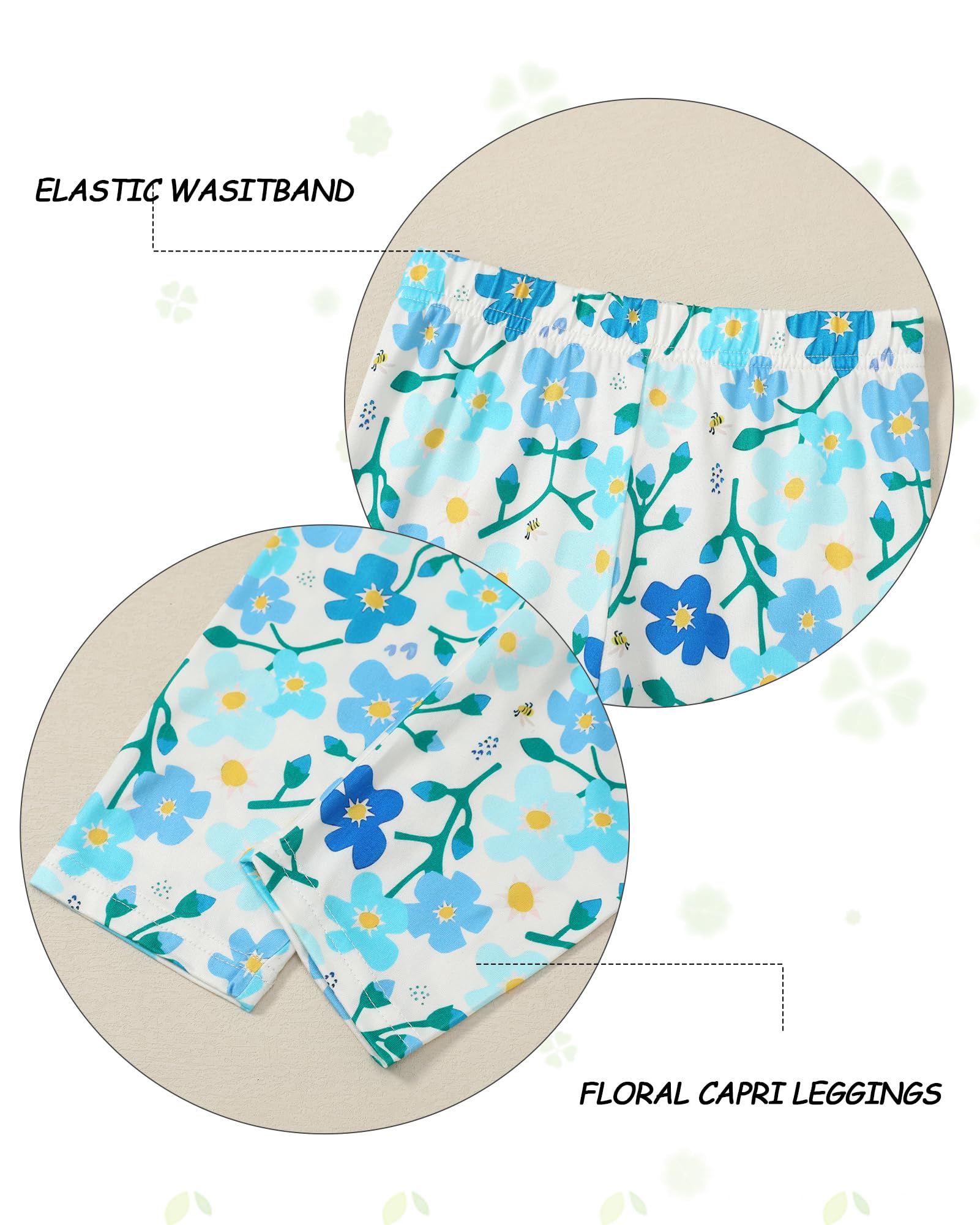 Adorable Design: The short-sleeve top features a charming ruffled hem and delicate bow detail, paired with matching floral-print capri pants. This girl clothes set creates a cute, coordinated look that’s both trendy and timeless