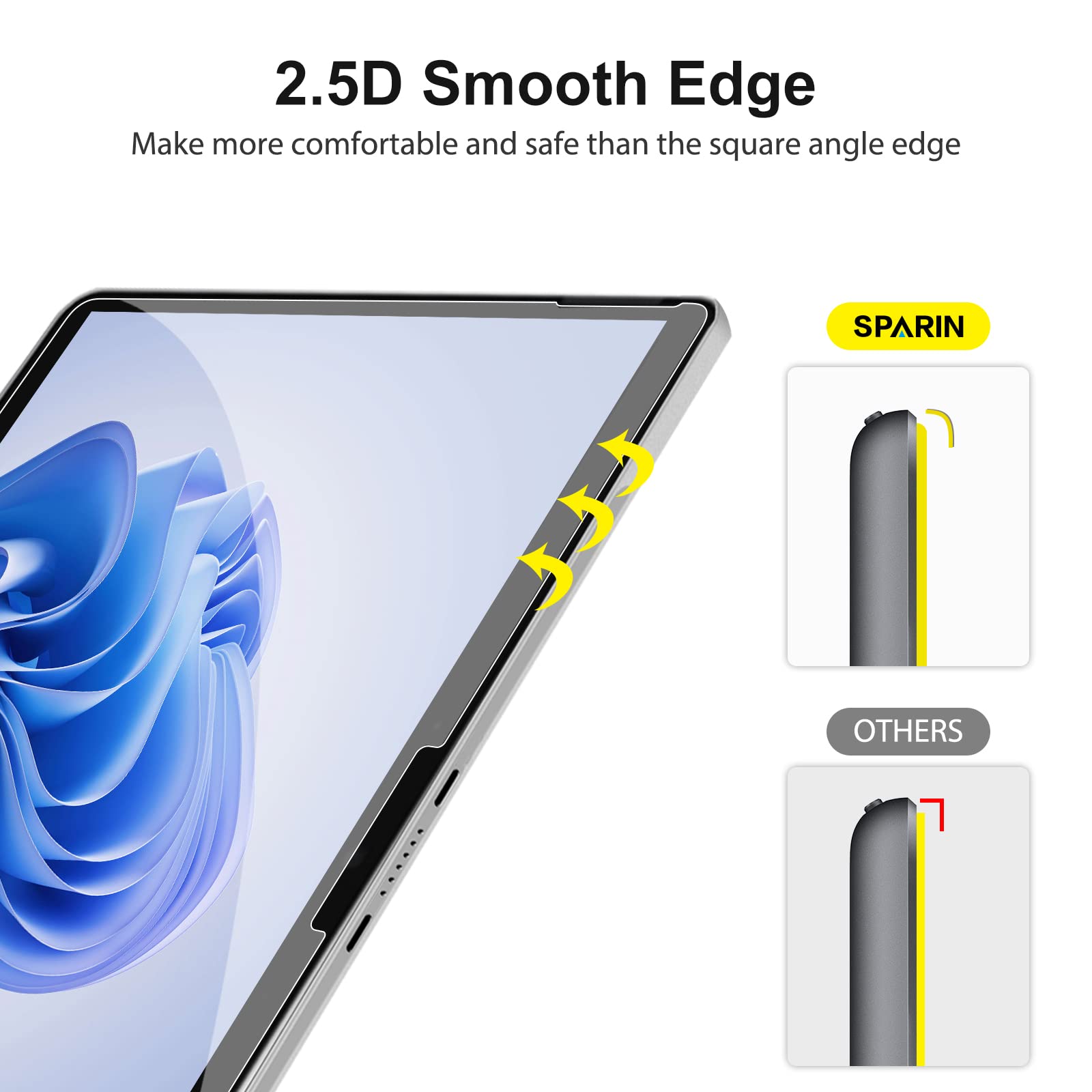 Case Friendly: The screen protector leaves enough space for the case to protect your surface pro 11/10/9/8/X, SPARIN tempered glass will not be squeezed out of the screen by the case