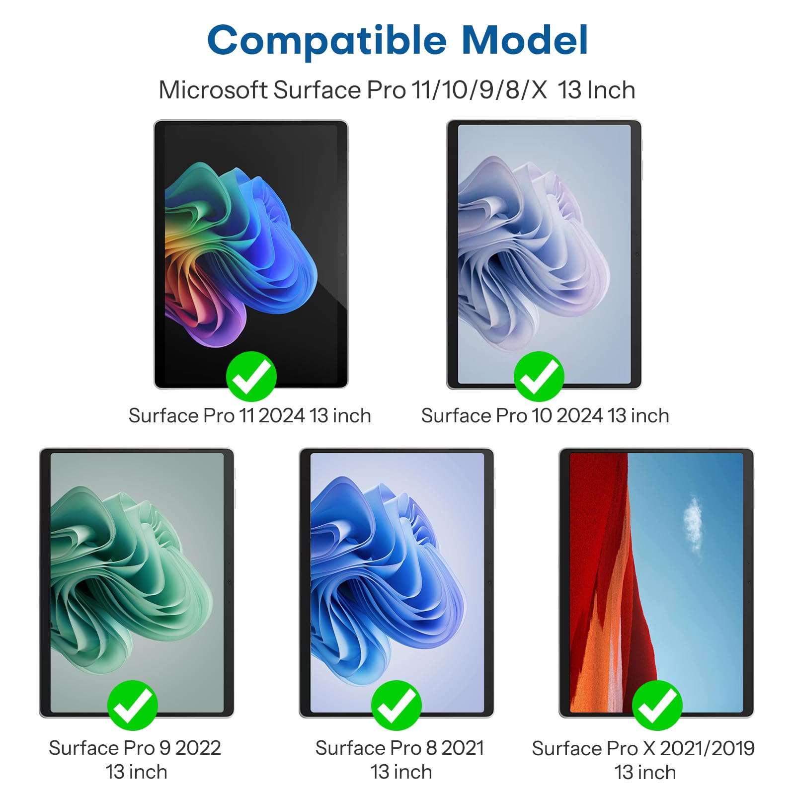 Fits Exclusively: Specially designed for Microsoft Surface Pro 11 2024/Surface Pro 9 2022/Surface Pro 10 2024/Surface Pro 8 2021/Surface Pro X 2021&2019 (13 Inch). (Please Check your model in :Settings-About-Model information)
