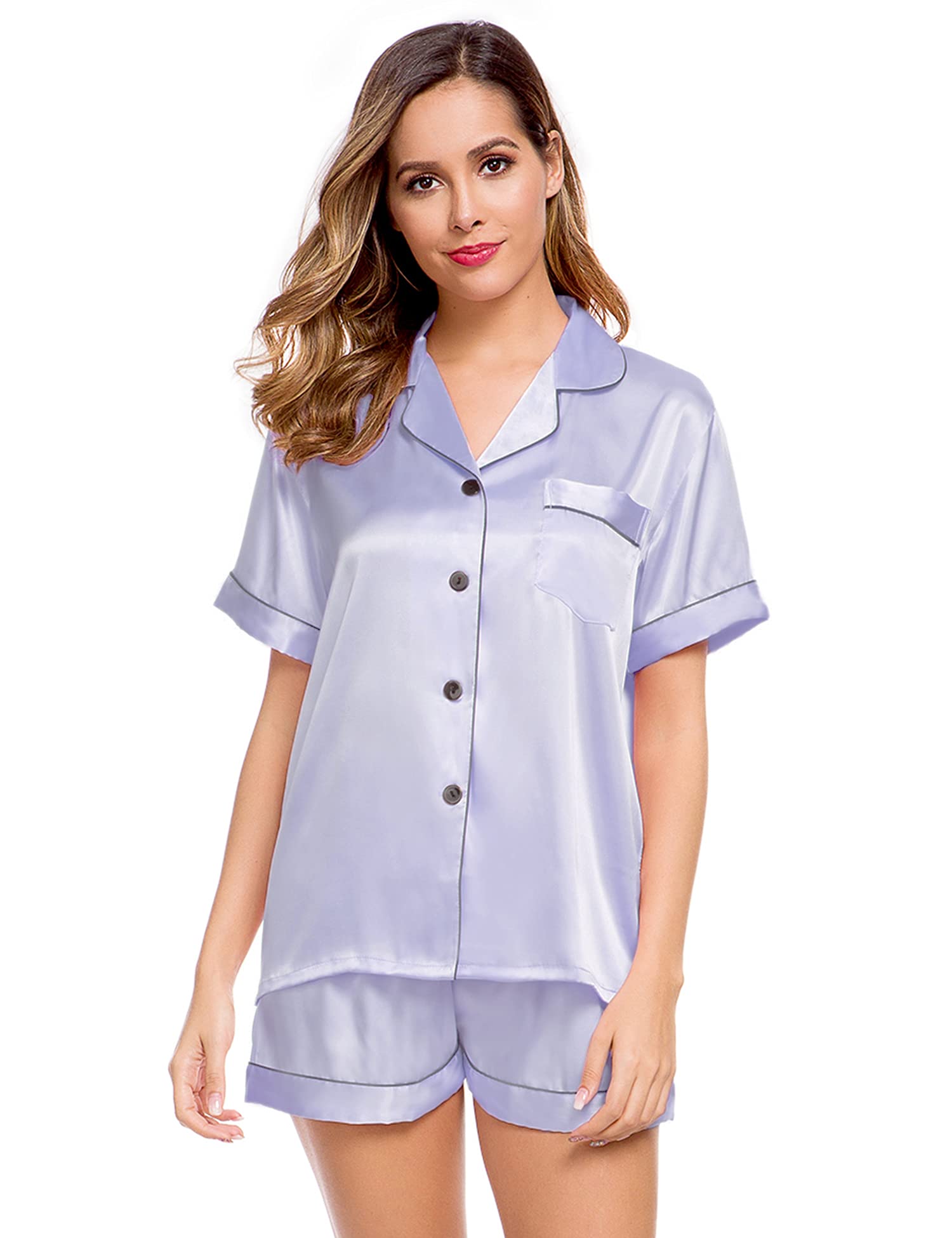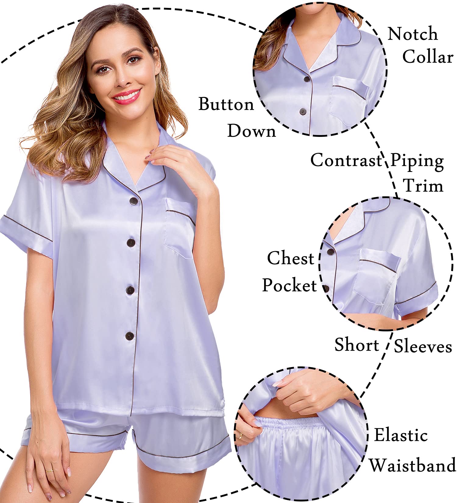 Occasion: Women's Short Sleeve Silk Satin Pajamas Set, which is suitable for daily wearing and easy to match. This ladies silk pajama sets are lightweight and easy to carry. Comfortable and suitable for lounging and sleeping, pajama party, girls day, bridal sleepwear, indoor, living room, bedroom, hotel, vocation, travel, and daily sleepwear.