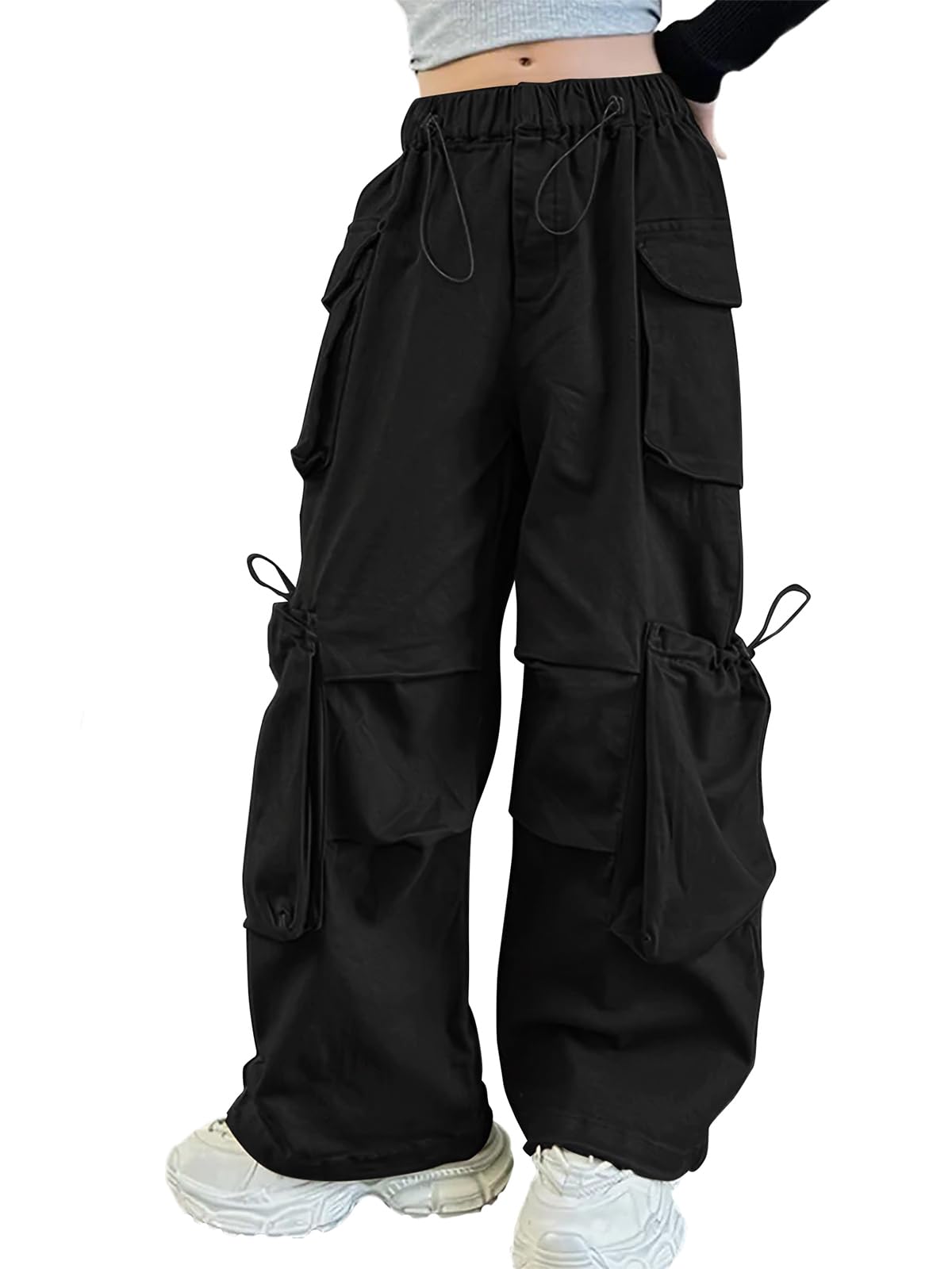 Features:Elastic waist/ drawstring . Multi pockets for functionally, the strings at your ankle, straight wide leg and loose joggers