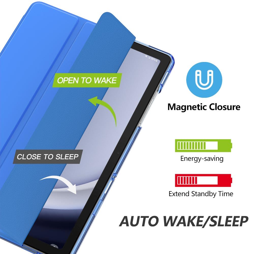 Auto Wake/Sleep: Built-in magnetic strip, automatically wakes or puts your tablet to sleep when the lid is opened and closed. this Tab A9 Plus Case Protects and extends battery life