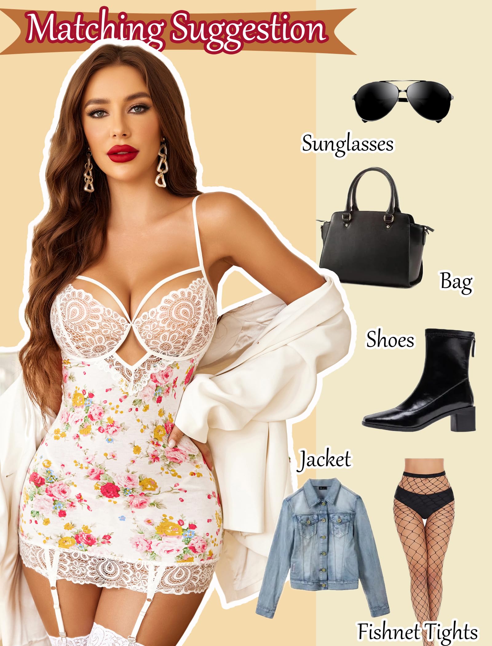 Garter style: This garter belt lingerie set featuring lace cups with a scalloped trim and strappy details, a front keyhole opening, a smooth bodice, a hook back closure,a sheer back with a keyhole opening, a cheeky cut back, a scalloped lace hem, adjustable garter straps, and a matching panty(Thigh-highs not included)