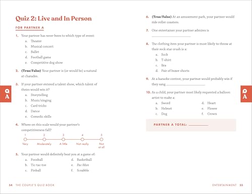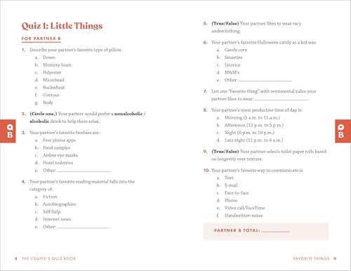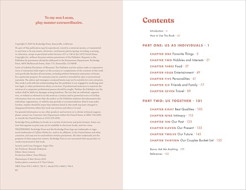 Energize your relationship with this quiz book for couples Curiosity is a great way to create and sustain intimacy in relationships. Create curiosity in your relationship with quizzes that will have you competing against one another to see who really knows who best. The first part focuses on you as an individual. The quizzes shine a light on your personal likes and dislikes as you answer questions about your partners' preferences. The second part contains quizzes focused on you both as a couple. Answer questions together as a couple and compare your similarities and differences. In each part, there are light and playful themes mixed with complex and challenging ones. You'll get a chance to reminisce about your past, explore the present, and dream about the future together. Create a deeper connection with your partner and grow your relationship with this standout among relationship books for couples.
