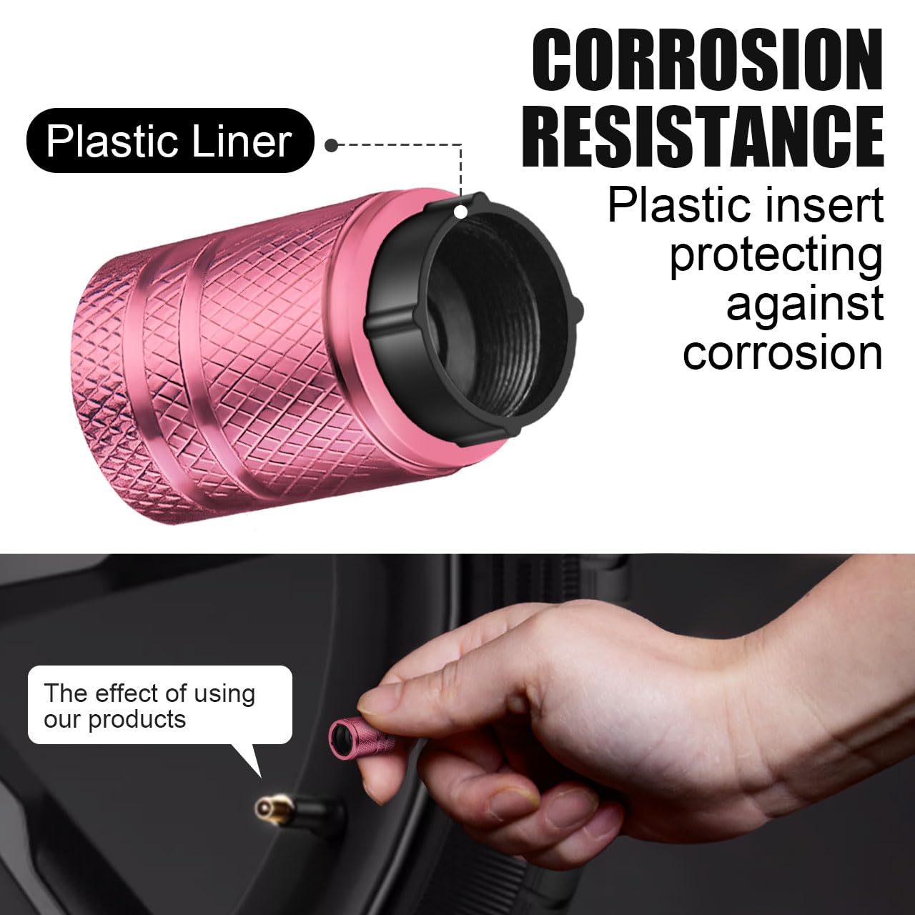 CORROSION RESISTANCE - Our tire valve stem caps feature a metal shell and plastic insert, protecting against corrosion, especially in wet and cold conditions.
