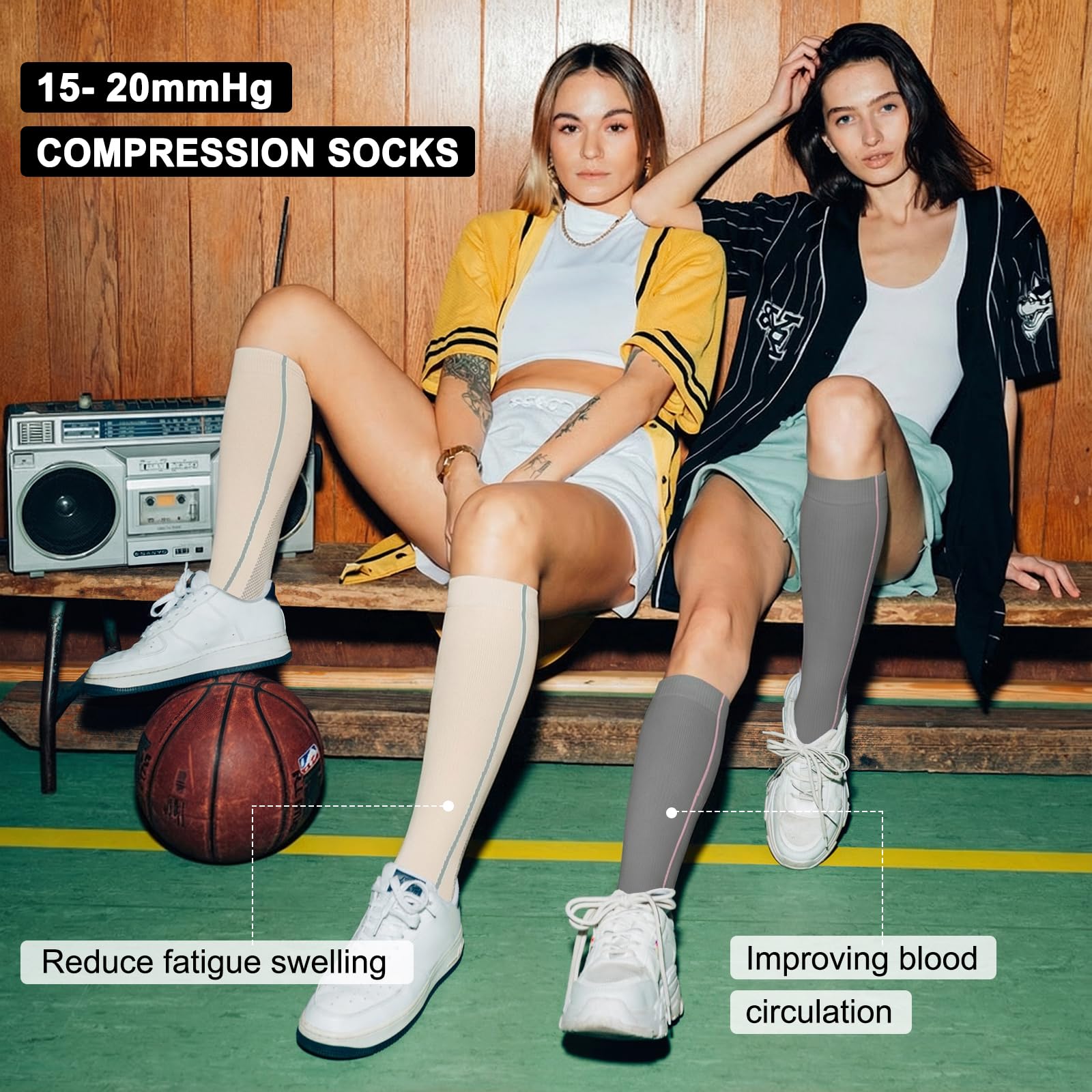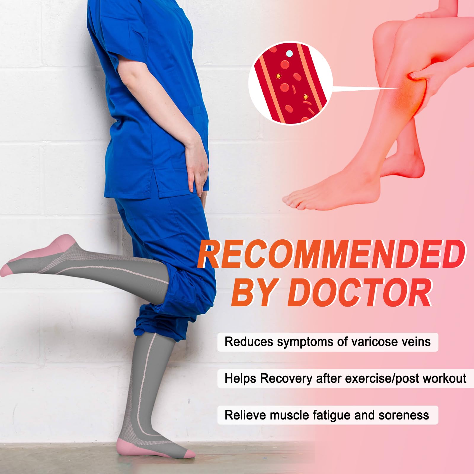 Compression for Optimal Support – These socks are engineered to provide compression that helps to reduce swelling, improve circulation, and relieve varicose veins. Made from nylon, they combine strength and flexibility, providing consistent compression throughout the day. Whether you’re recovering from a workout or standing for hours, these socks will provide immediate relief and comfort, making them perfect for both high-impact sports and long work shifts.
