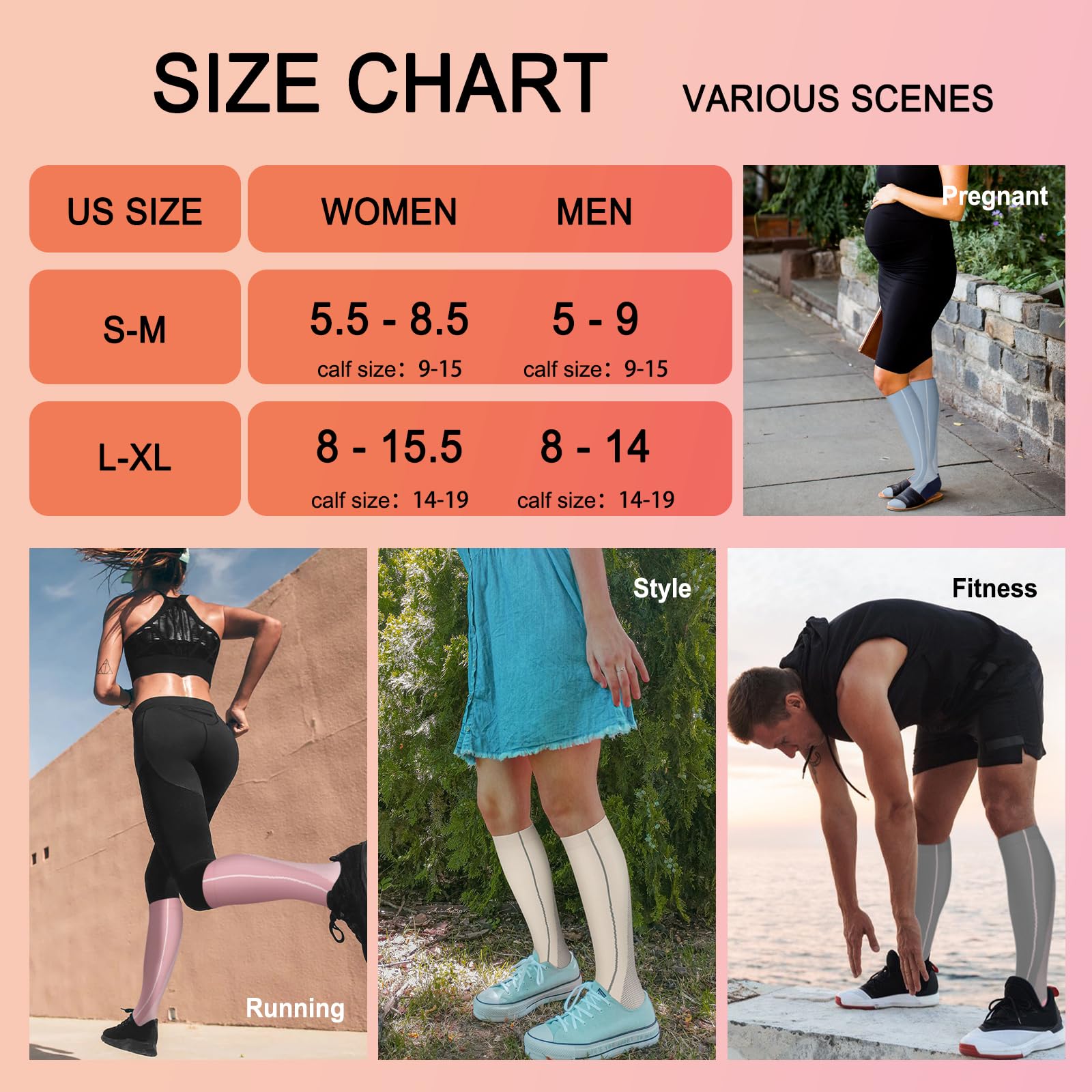 Perfect for Every Occasion – From running, sports, and pregnancy to work and travel, these compression socks are versatile enough to meet your needs. They help to reduce swelling, improve circulation, and support blood flow. Whether you're on a flight, in the gym, or working a long shift, you'll experience the difference in comfort and performance with these socks.
