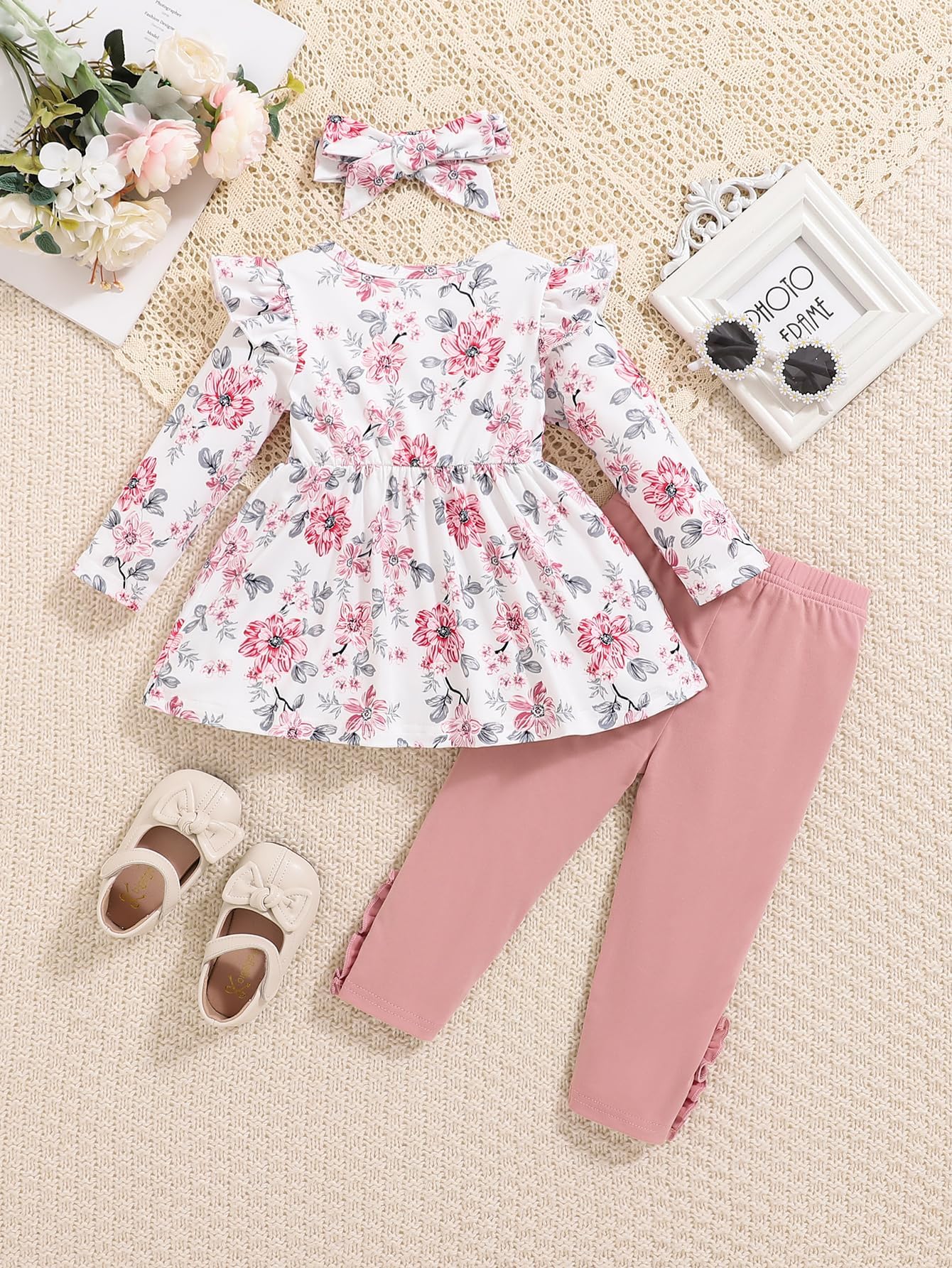 Todderl Girl Clothes Adorable Design: Baby girl outfits is designed with a crew-neck+long sleeve ruffle striped+floral shirts+stylish solid color+annimal pant that will make little girls look so cute all day.