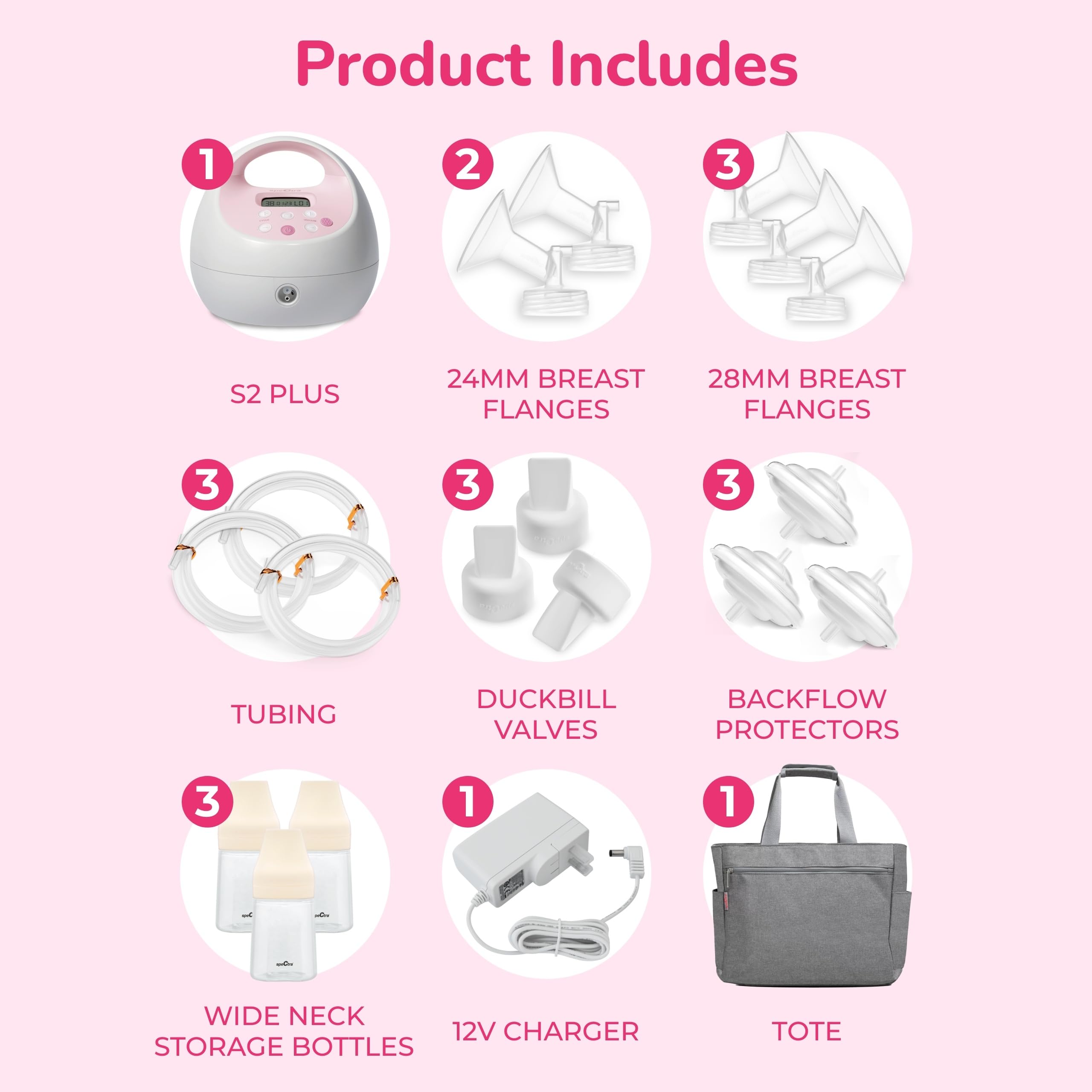 Complete Pumping Accessories: Receive all pumping accessories compatible with S2 pump so you are prepared to begin your breast pump journey