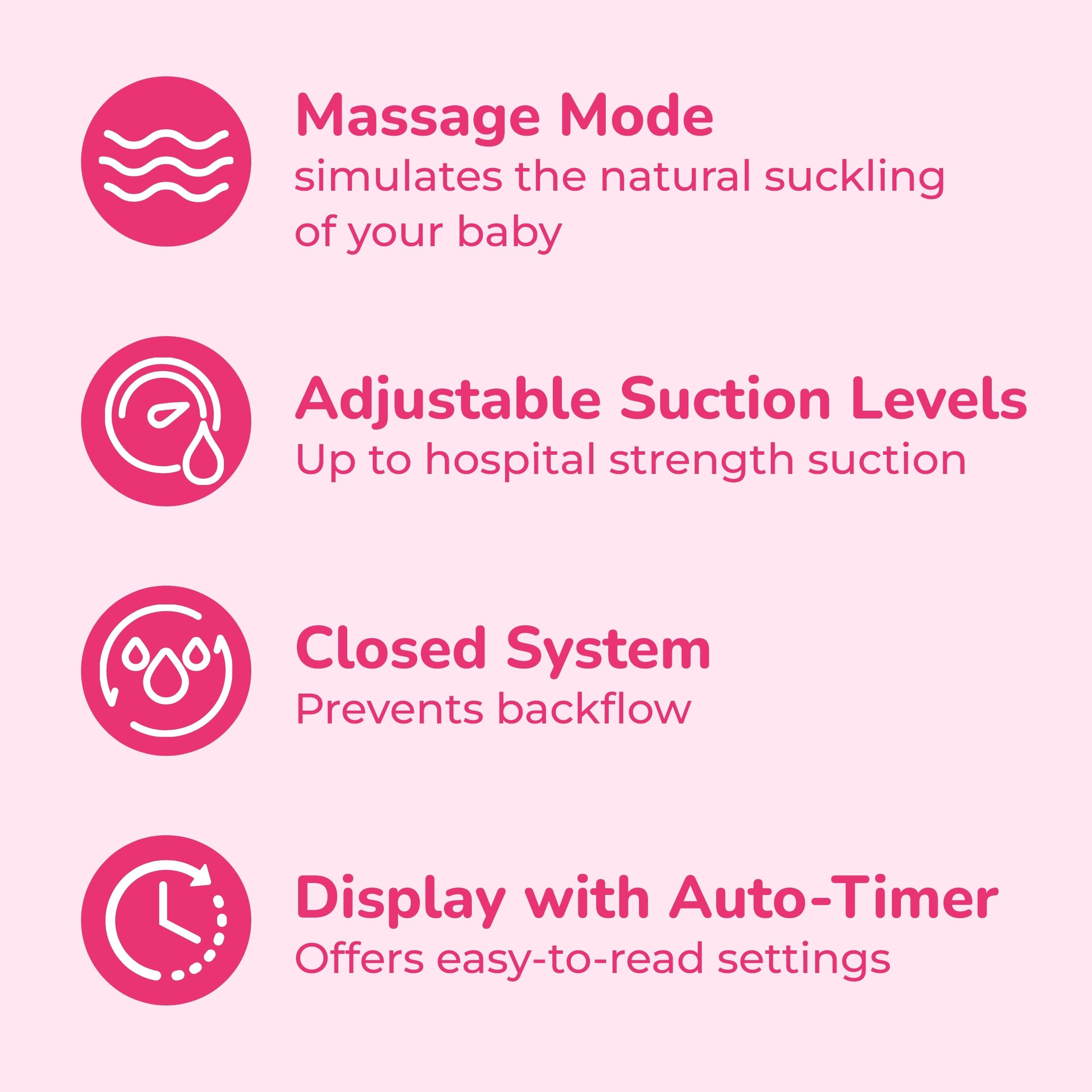 Personalized Settings: Adjust the breast pump settings to fit your preference with adjustable suction levels and two phase cycling featuring expression and massage mode