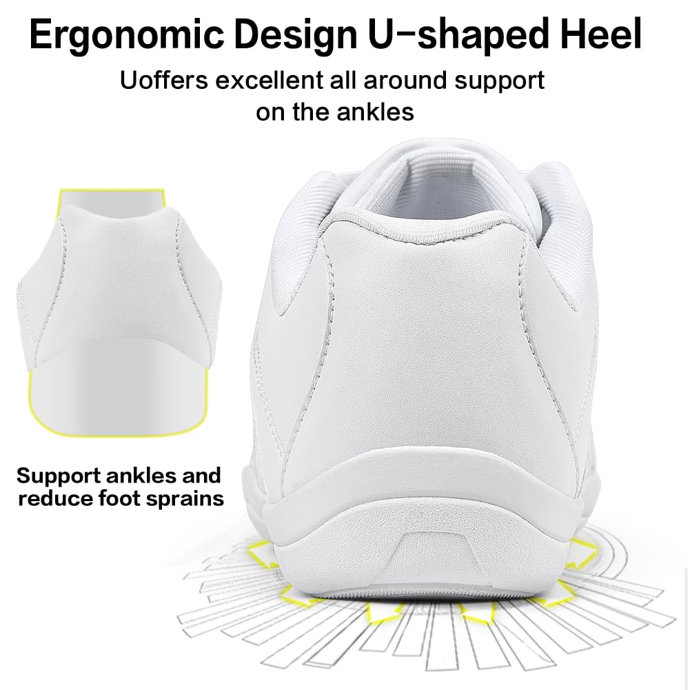 Supportive Cheerleading Sneaker: Stunt-specific grips and padded achilles support offers excellent all-round support, allowing quick and easy movement while creating a sense of security.