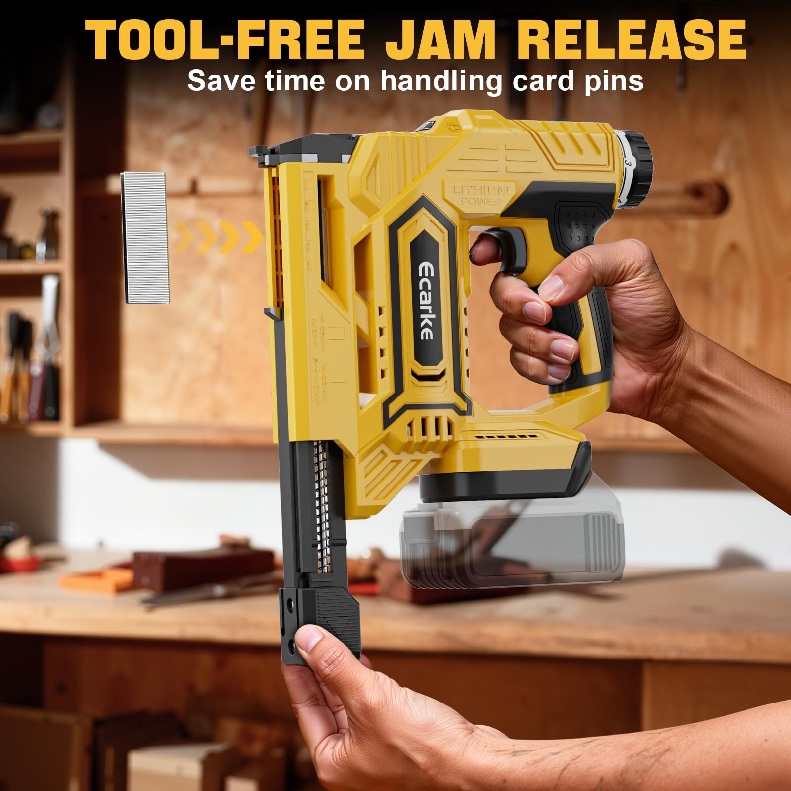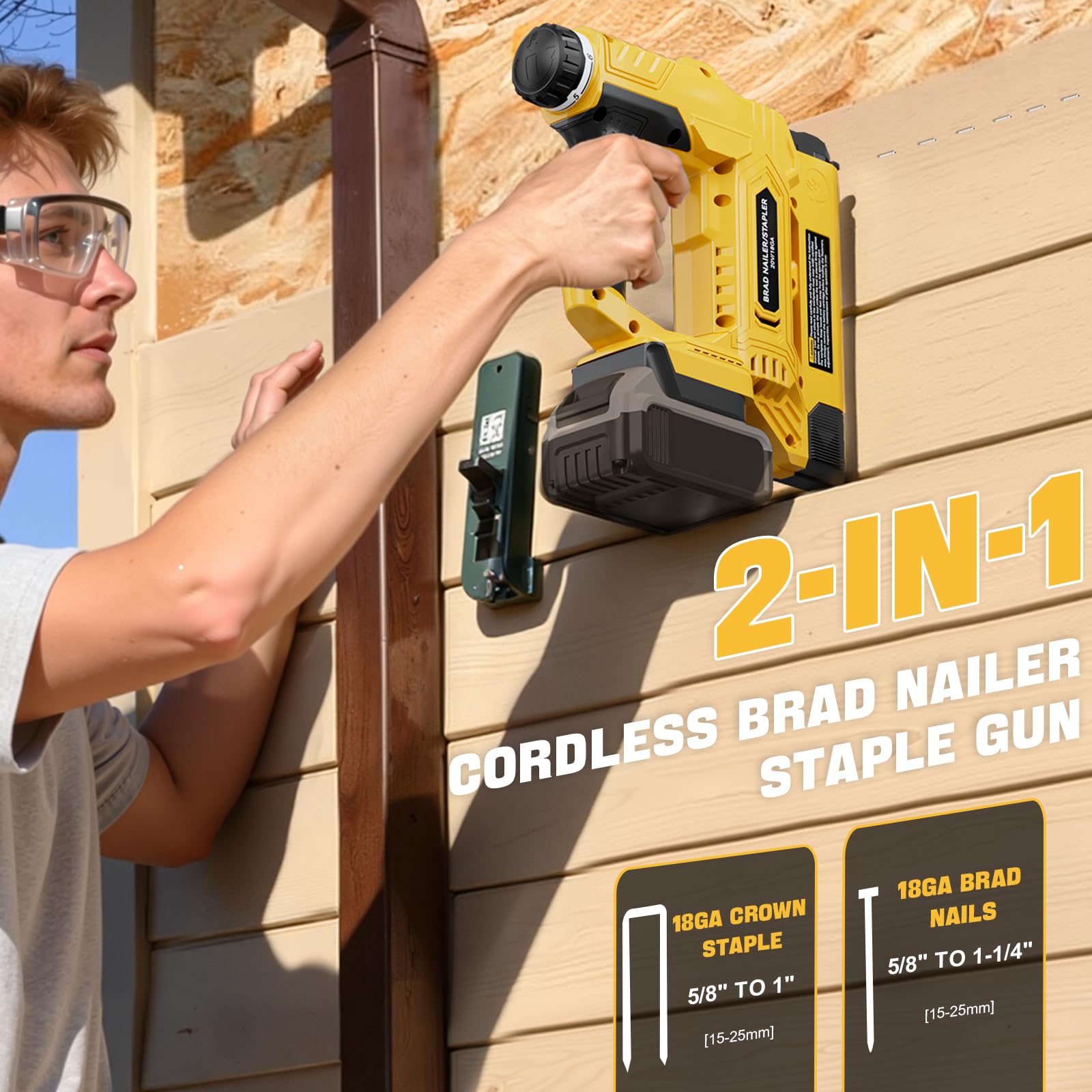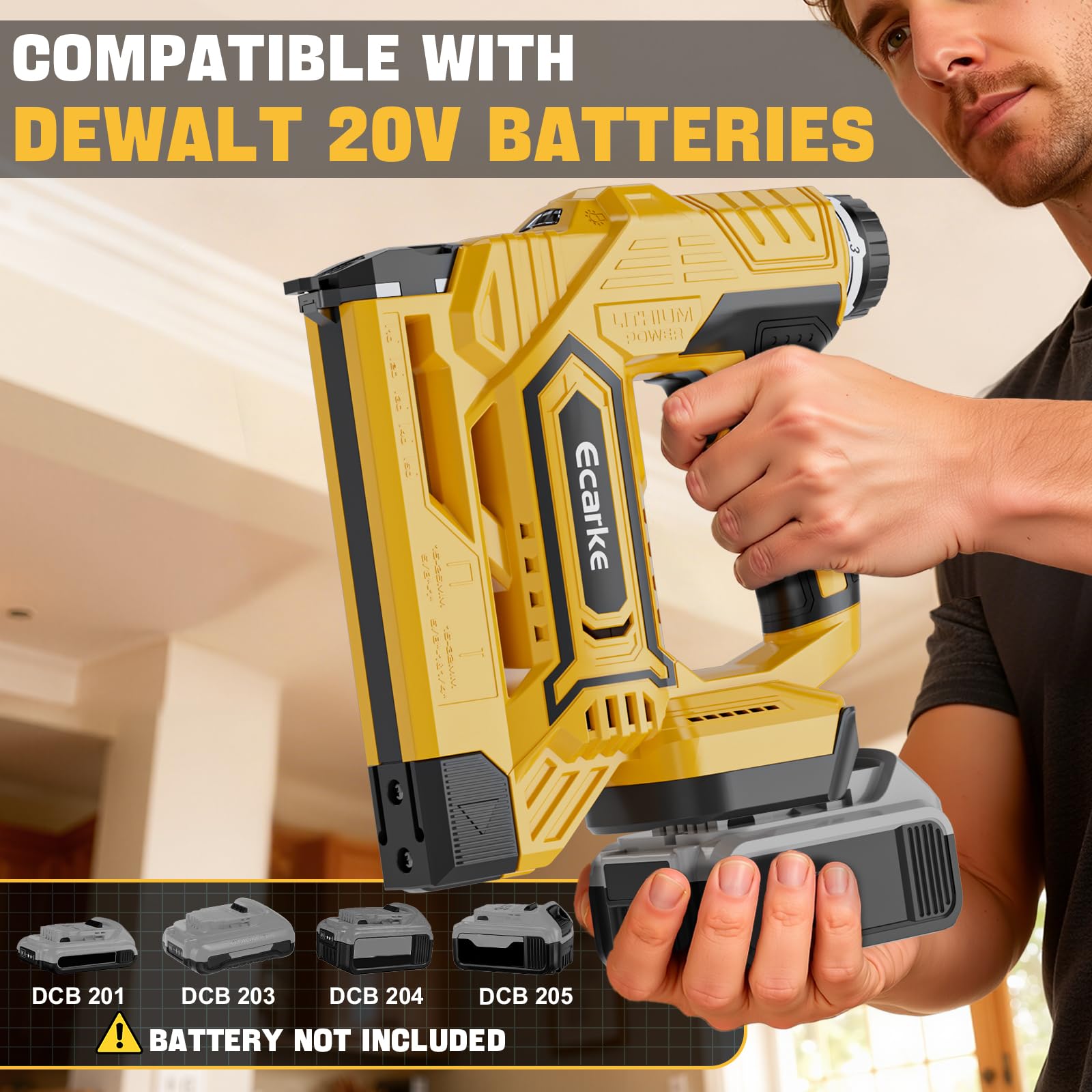 Compatible with DeWalt 20V Battery & Wireless Flexibility for Every Job Site: Fully compatible with DeWalt 20V batteries (DCB206, DCB205, DCB204, DCB181, DCB182, DCB200, DCB203, DCB205-2, DCB204-2, DCB206-2, and more), this cordless brad nailer integrates effortlessly into your existing tool ecosystem. The cordless design eliminates tangled cords and outlet restrictions, delivering unmatched mobility for tight spaces, overhead work, and outdoor projects. Battery NOT included.