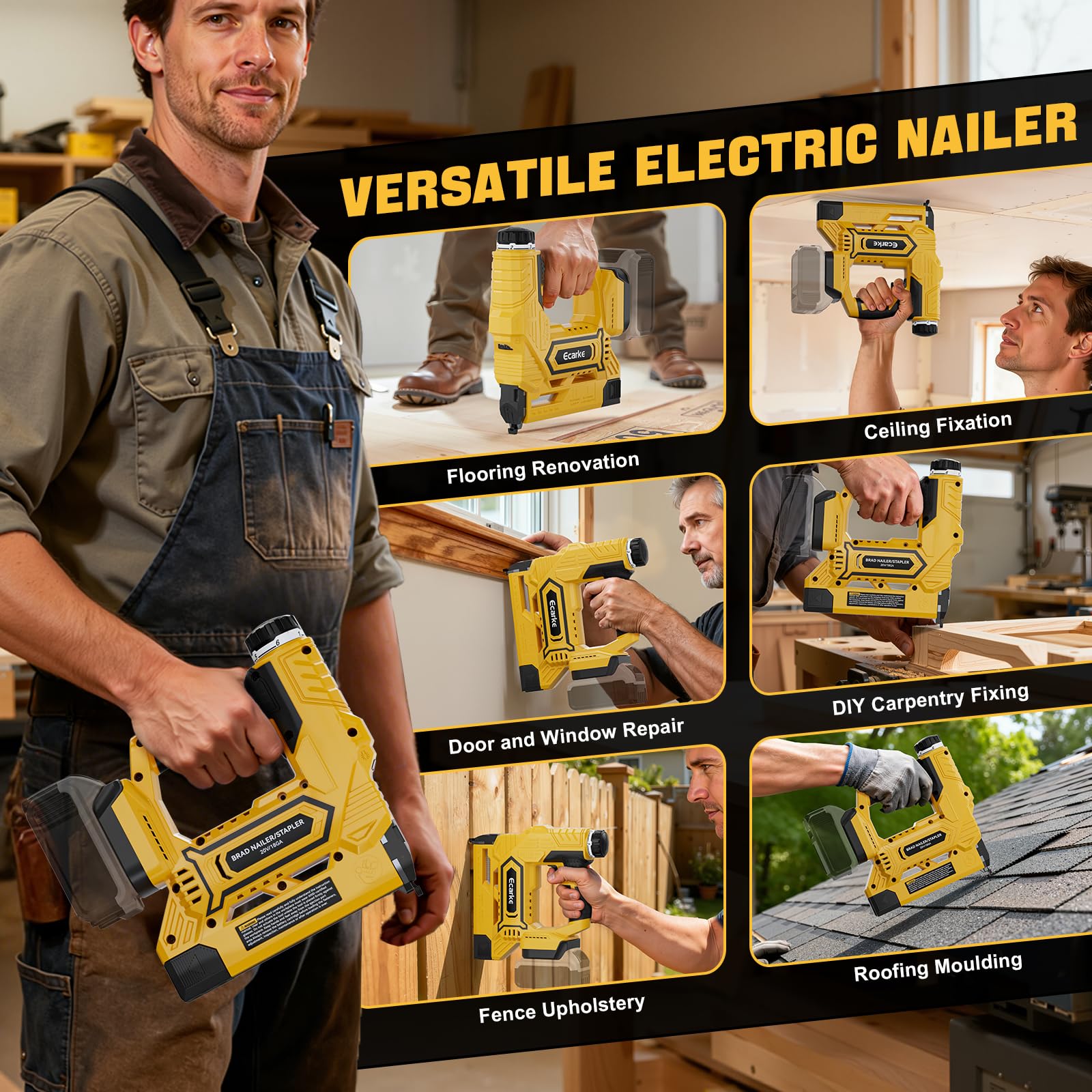 Comfort-Optimized Lightweight Build for All-Day Effortless Operation: Crafted with a balanced weight distribution and anti-slip contoured grip, this cordless brad nailer minimizes hand and arm fatigue, even during extended nailing sessions. Its lightweight build (no heavy cord or built-in battery) and steady operation make it ideal for overhead trim work, cabinetry installation, and detailed finish carpentry—perfect for both DIY enthusiasts.