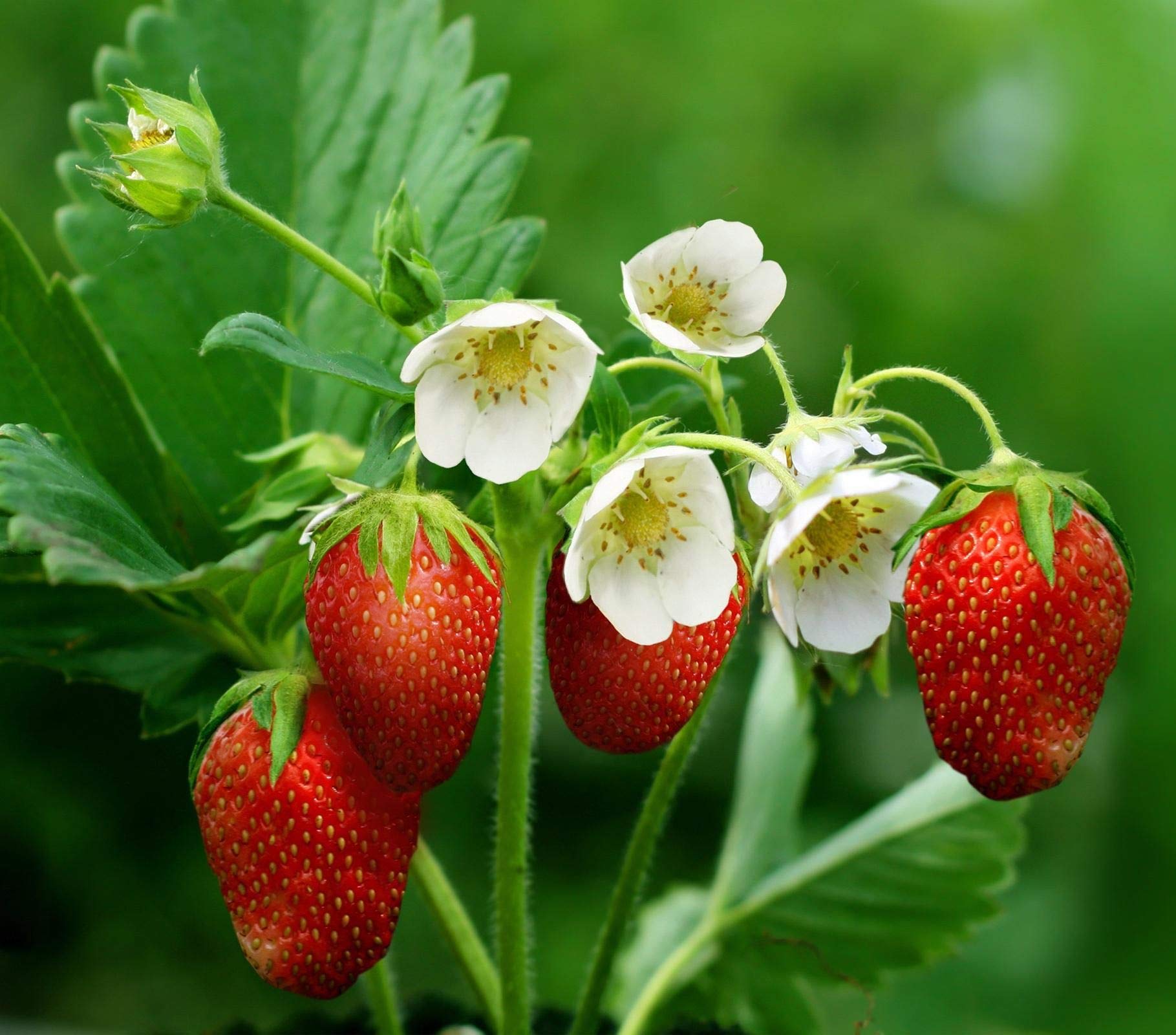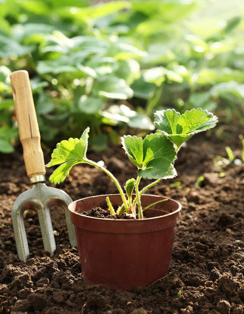 PLANTING STRAWBERRY SEEDS: In spring, sow seeds 1 inch apart and 1/8 inch deep in a container of fine seed starting mix. Maintain at 60 – 70° and provide a strong light source. Keep evenly moist but not soggy. Be patient, seeds can take 14 to 28 days to germinate. Feed young seedlings every 2 weeks with half-strength fertilizer. When they have several sets of leaves, transplant 3 inches apart into a deeper container or individual pots so root systems have room to develop. When 3 inches tall, gradually acclimate to outdoor conditions and plant 12 inches apart in fertile soil in full sun or partial shade in very hot climates. TRANSPLANTING STRAWBERRY SEEDLINGS: Once the young strawberry seedlings are 2-3” tall, and the last spring frosts have past, it’s time to think about planting them in the garden. Strawberry seedlings are delicate, and they’re accustomed to the consistent light and temperatures in their indoor growing area. It’s important to harden off the seedlings by exposing them to the outdoors before planting. Once the seedlings are hardened off, transplant them to a prepared garden bed with rich soil, spacing about 6 to 8 inches apart for alpine varieties and 8 to 12 inches apart for regular strawberries.