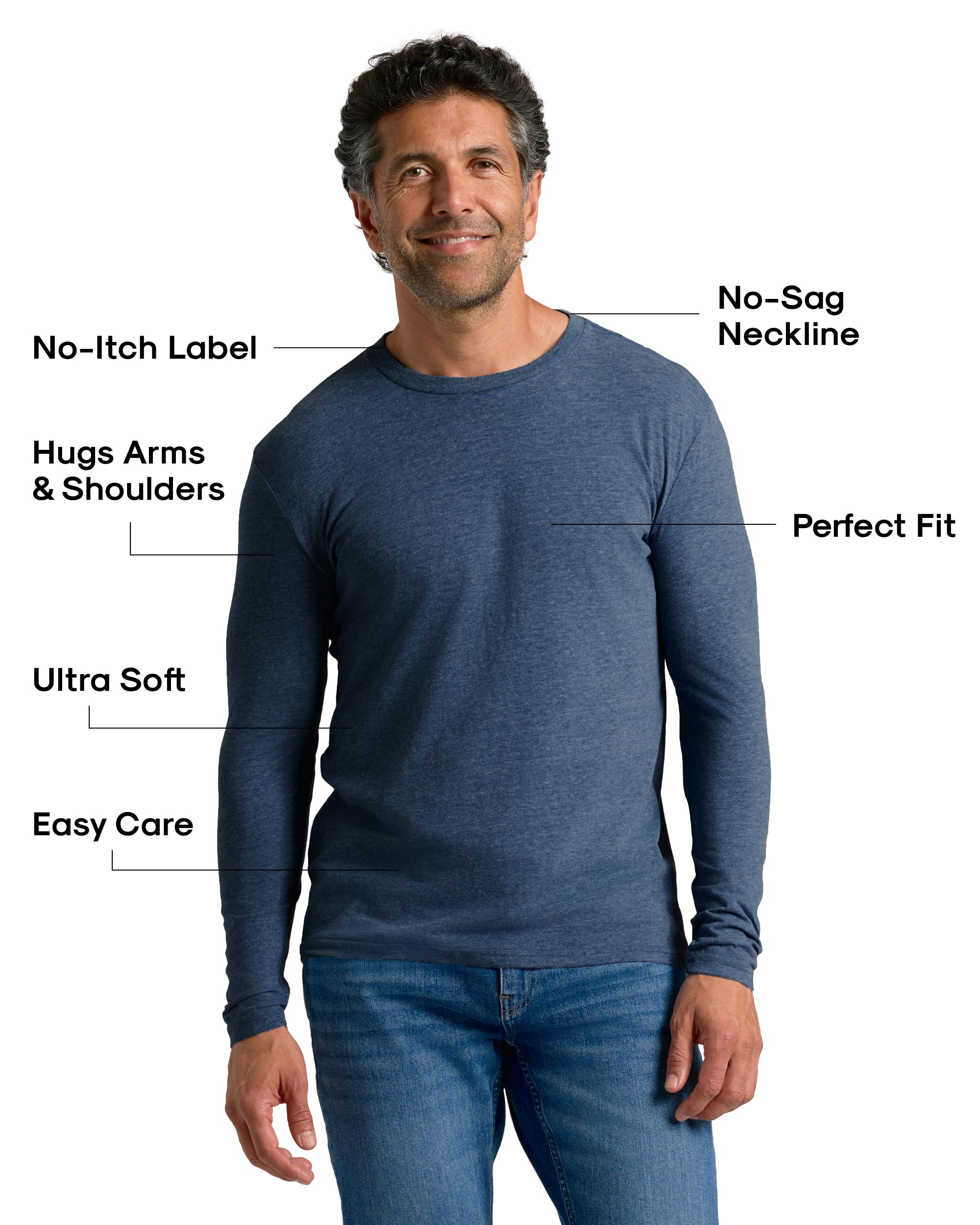ALL-DAY COMFORT, TAG-FREE: Long sleeve men's t-shirts built for easy wear from workdays to weekends. Our classic crew and mens henley shirts have tagless prints with classic side seams that keep shape with minimal shrinkage (about 5% on low heat).