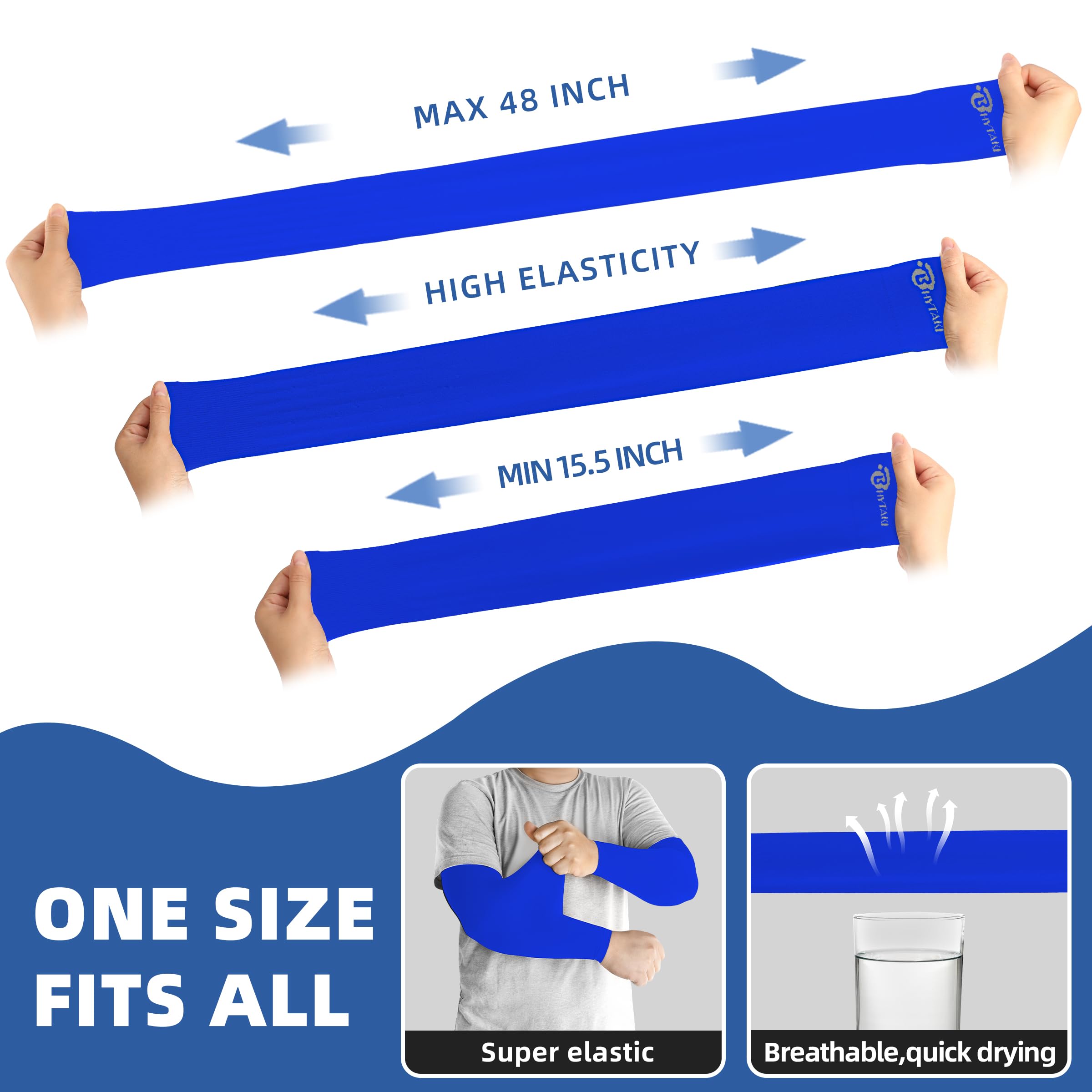 【Breaking the Conventional Elasticity】We add elastic fiber to the traditional sleeves, which greatly increases the elasticity of the uv arm sleeves for men. Sleeves to cover arms can meet the needs of different groups of people. The length of the sun sleeves can be stretched from 15.5 inches to approximately 48 inches, and the sleeves is 360° integrated, there are no seams throughout the long arm. No matter your arms are thick or thin, you won't feel uncomfortable due to strangulation marks.