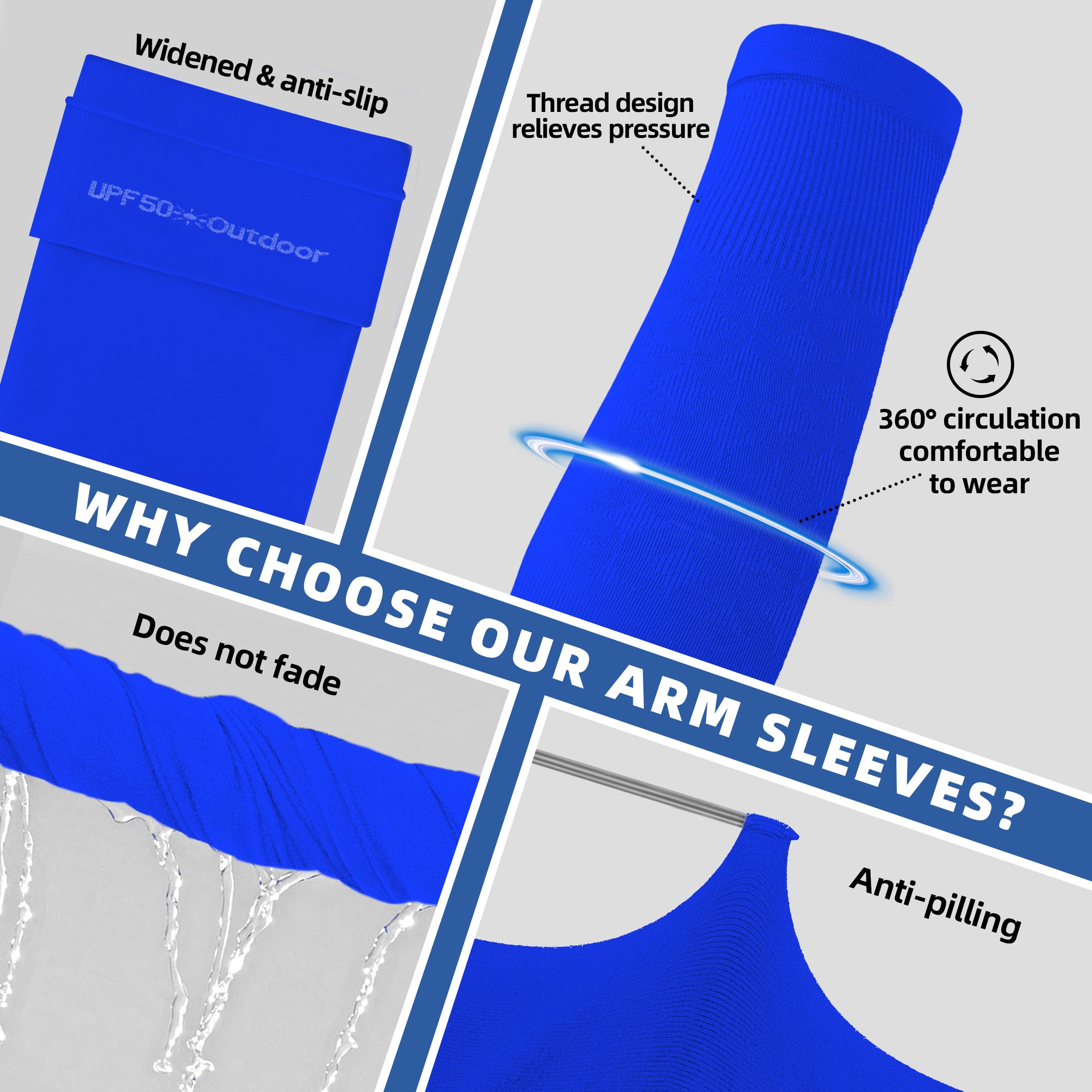 【Anti-Pilling, Color Fixing, Anti-Slip】Our compression sleeves are treated with anti-snagging and anti-pilling treatment, making them more wear-resistant and durable. At the same time, the sleeves to cover arms have been color-fixed and will not fade as long as they are not soaked for a long time; the upper arms have been widened to effectively reduce curling; the arm sleeves can be machine washed, but hand washing is recommended; textiles require careful care to extend its service life.