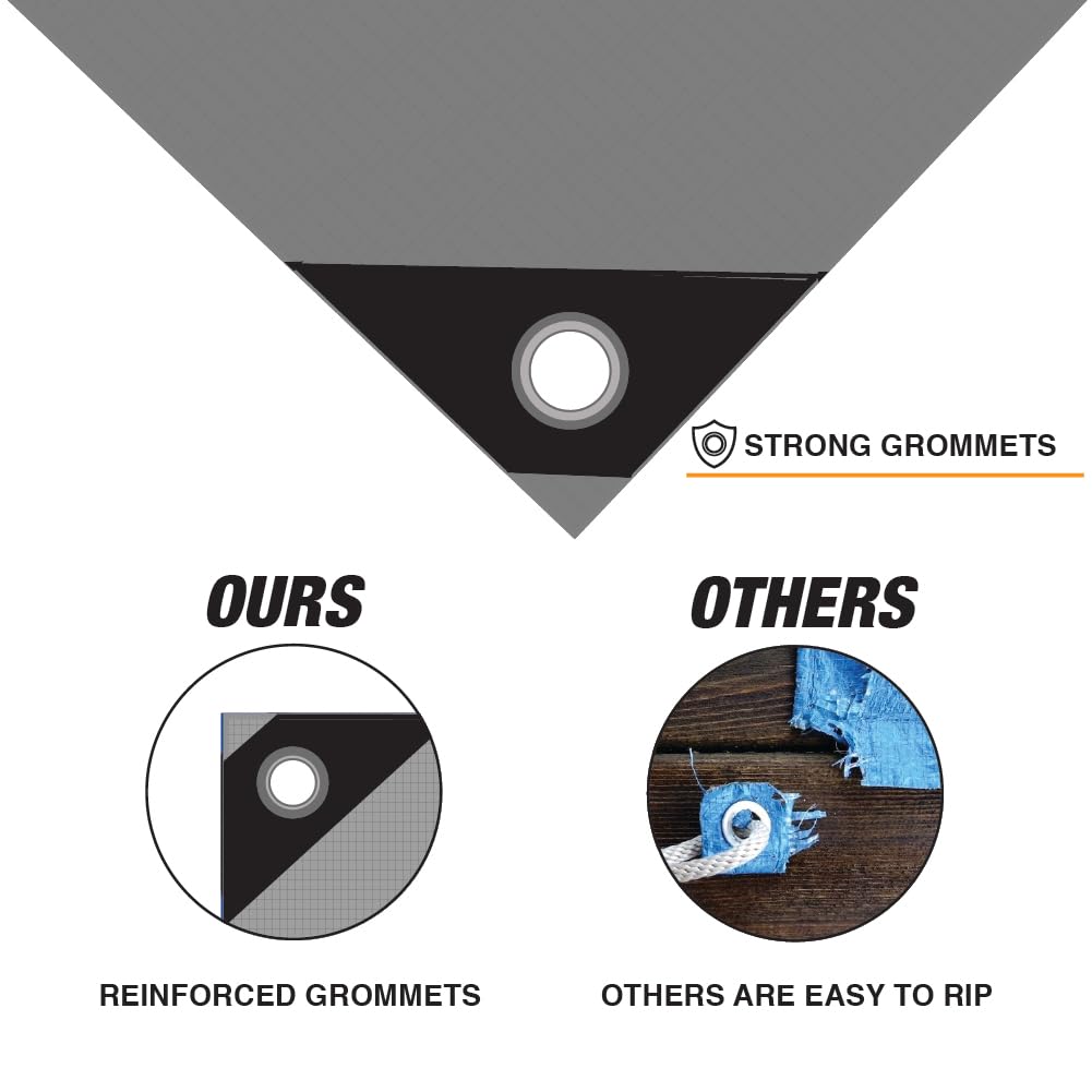 Metal Grommets: Secure the tarp easily with metal grommets placed every 36 inches along the edges and on all four corners.