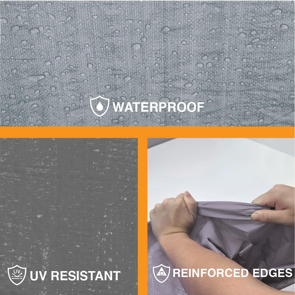 Heat-Sealed and Reinforced: No need to worry about tears or leaks. The tarp features heat-sealed seams and reinforced hems with poly rope for extra strength.