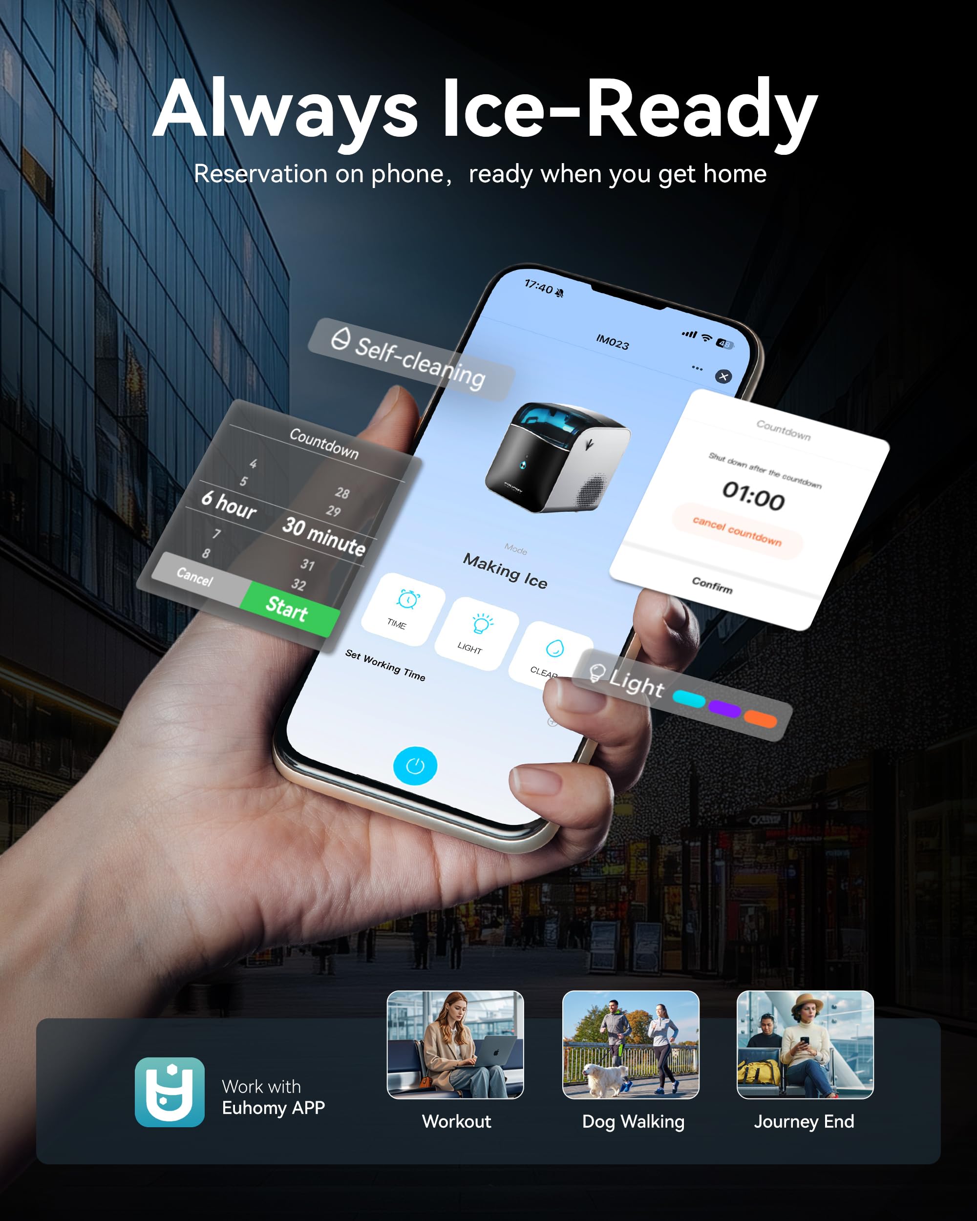 Smart Wi-Fi & App Control: Stay connected via Bluetooth and pair your nugget ice maker countertop with the dedicated app. Use voice commands via Alexa. Once online, you can remotely start ice production and enjoy fresh, ready-to-use ice anytime—wherever you are!