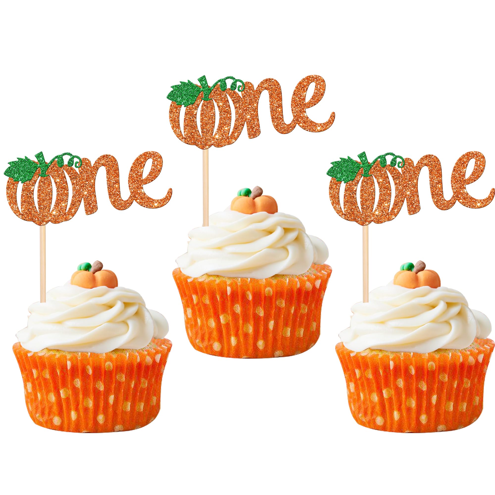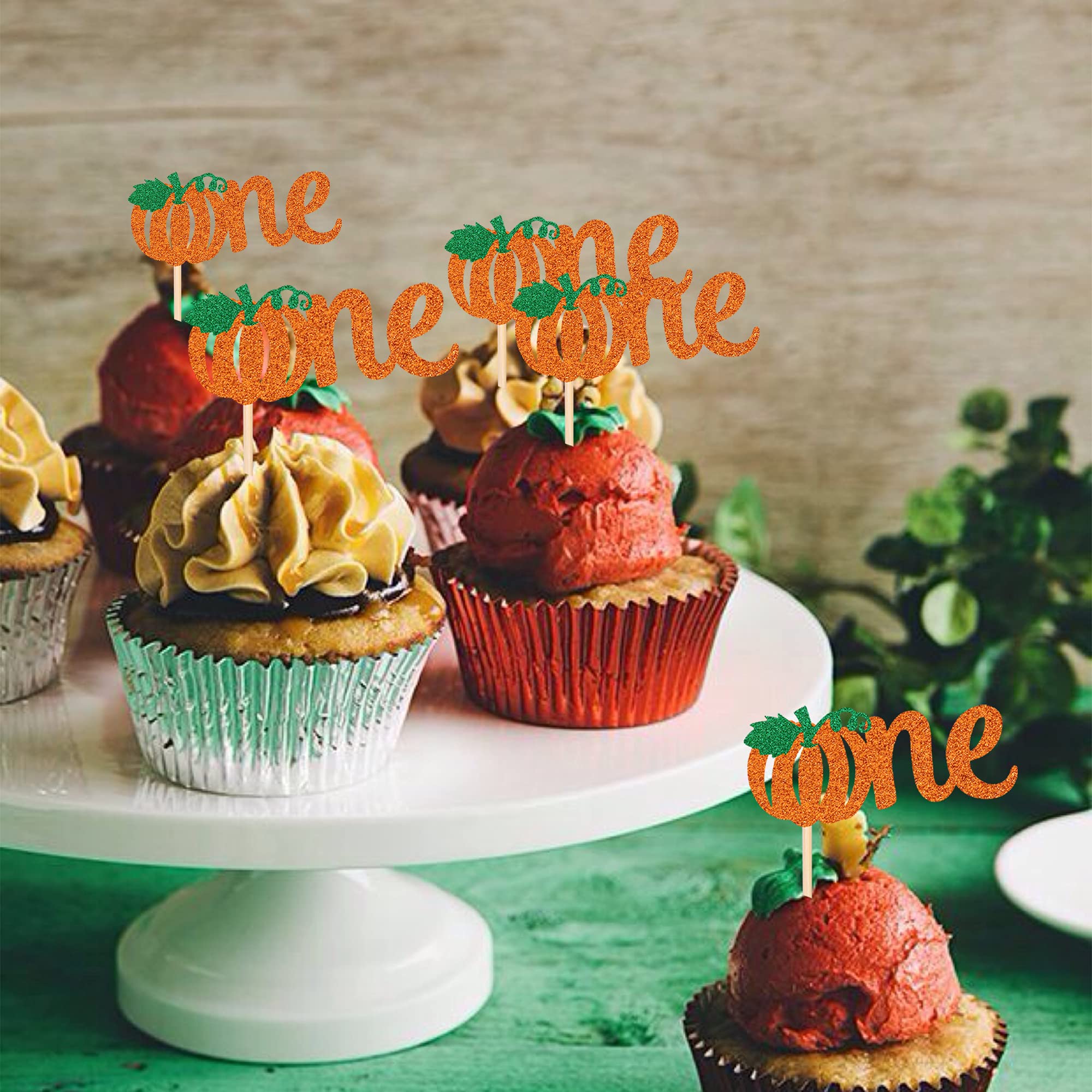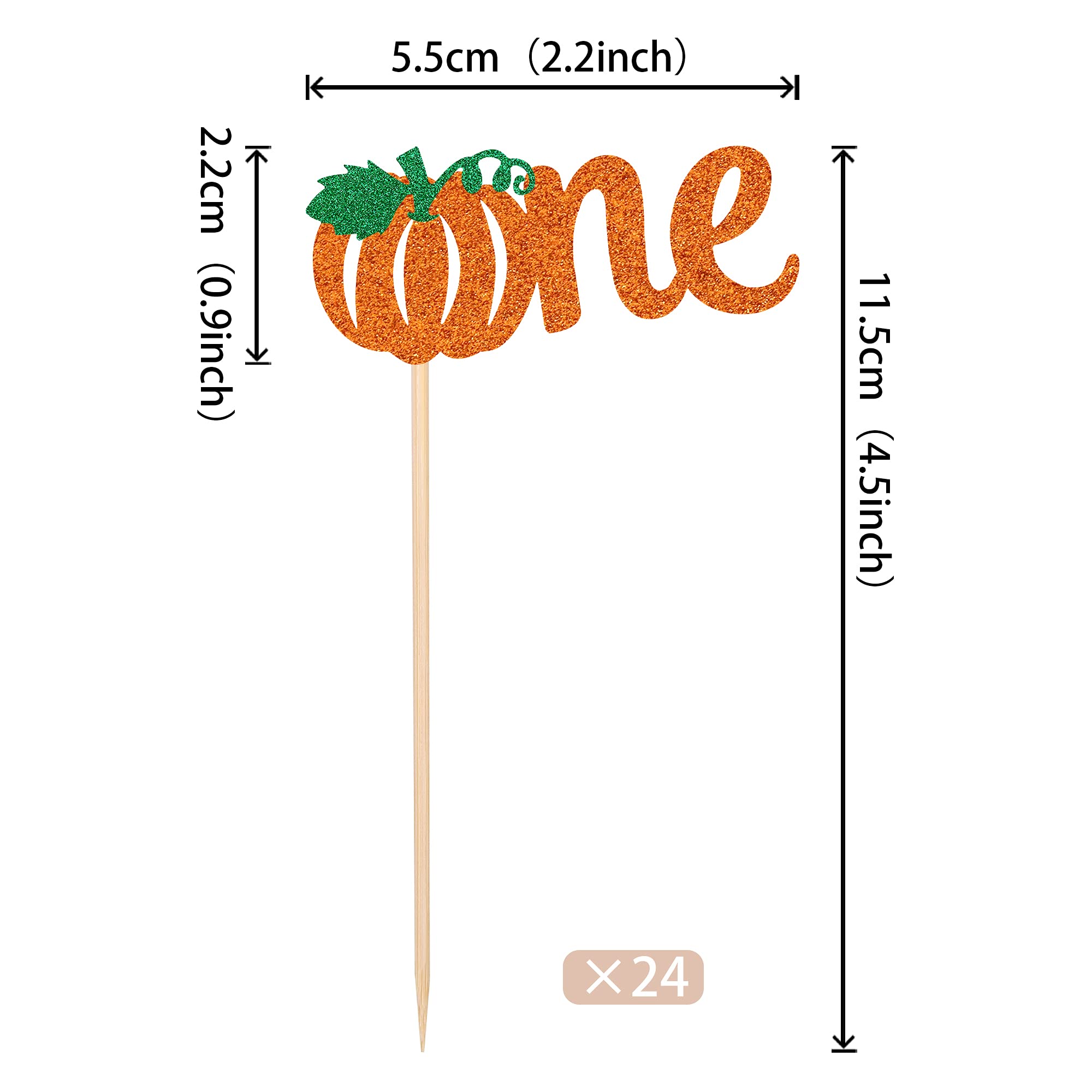 Pumpkin One Theme Party Cupcake Decorations Supplies Perfect for pumpkin theme party,thanksgiving theme party, baby shower party,1 st birthday party cupcake decorations supplies. Pack of 24 pcs. The size is W 2.2 inch * H 4.5 inch / W 5 cm * H 11.5 cm ( with stick ) Made of high quality glitter paper card stock and food grade sticks,thick and thick and sturdy. These cupcake toppers are single glitter, the back is white, and they are intended for decoration only, please do not put them in oven or microwave. If the item you received has any defects, please contact us for refund.we will deal with it within 24 hours.
