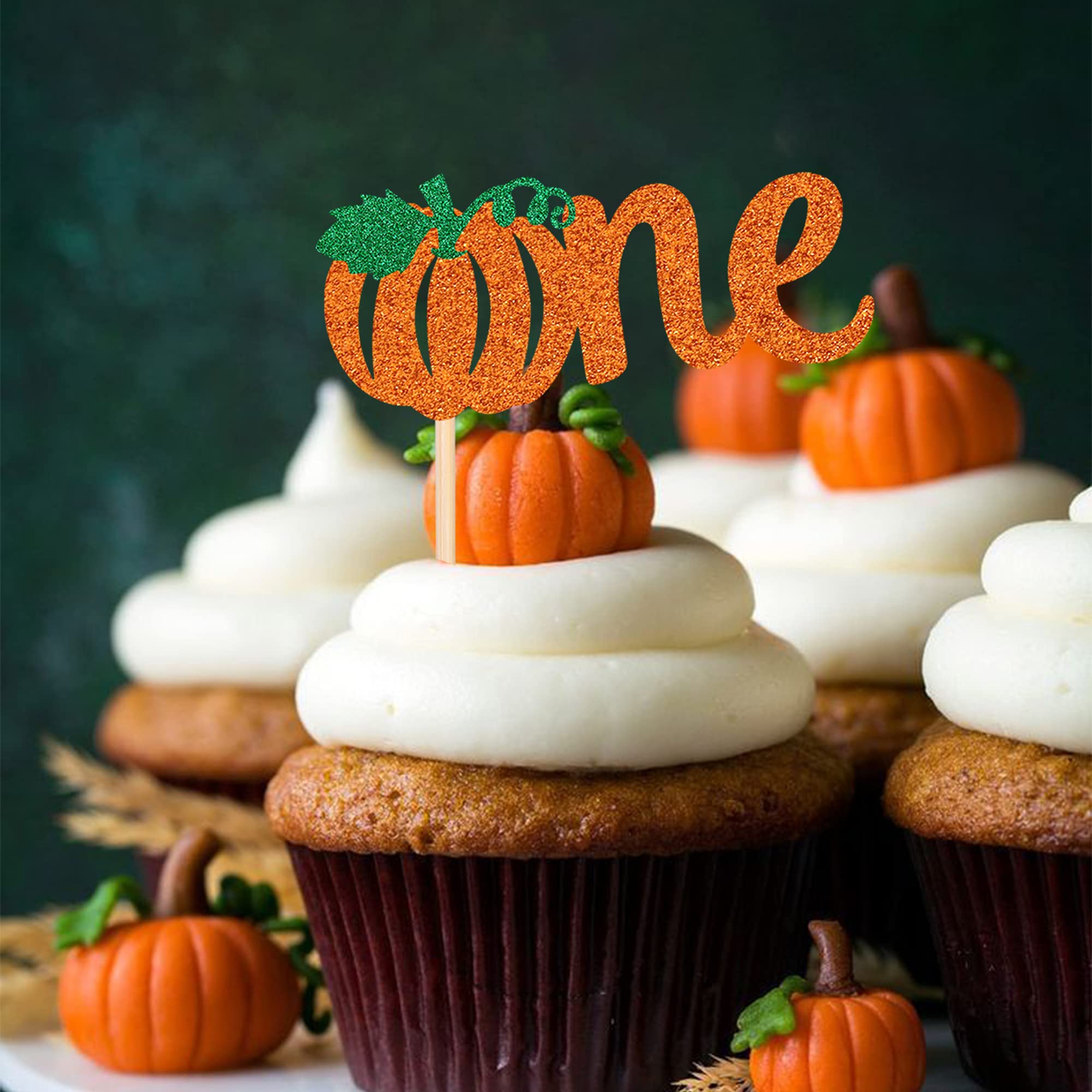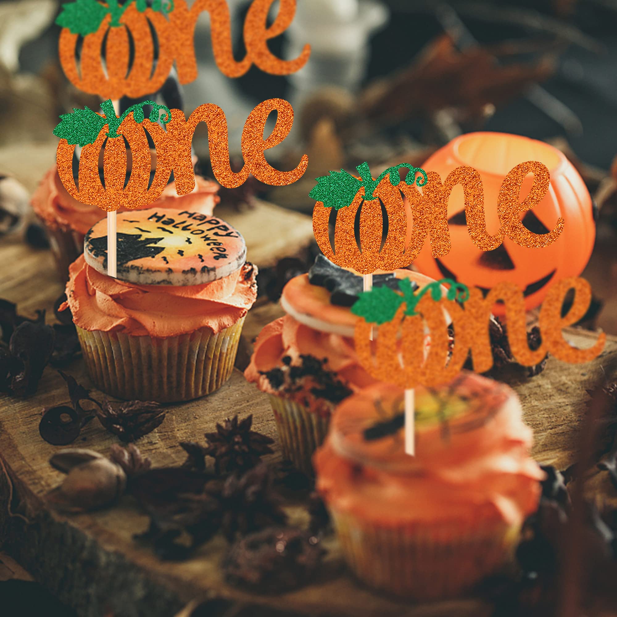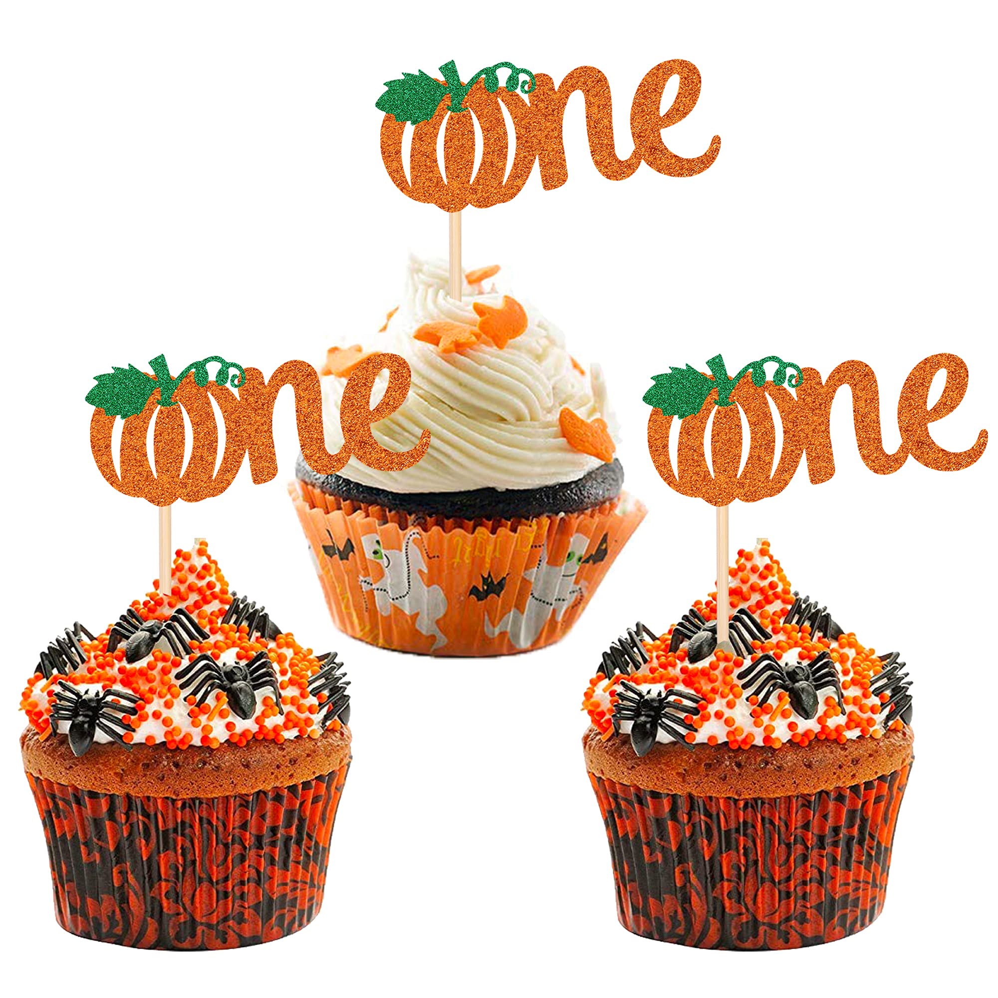 Pumpkin One Theme Party Cupcake Decorations Supplies Perfect for pumpkin theme party,thanksgiving theme party, baby shower party,1 st birthday party cupcake decorations supplies. Pack of 24 pcs. The size is W 2.2 inch * H 4.5 inch / W 5 cm * H 11.5 cm ( with stick ) Made of high quality glitter paper card stock and food grade sticks,thick and thick and sturdy. These cupcake toppers are single glitter, the back is white, and they are intended for decoration only, please do not put them in oven or microwave. If the item you received has any defects, please contact us for refund.we will deal with it within 24 hours.