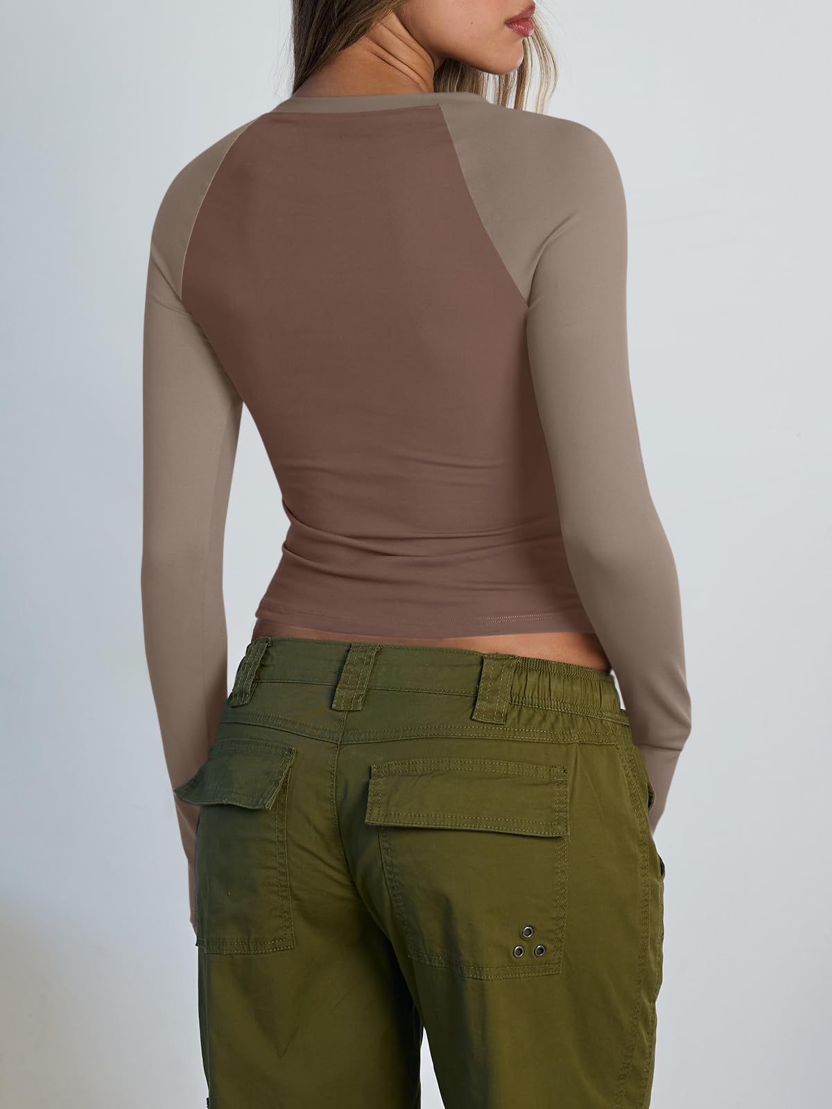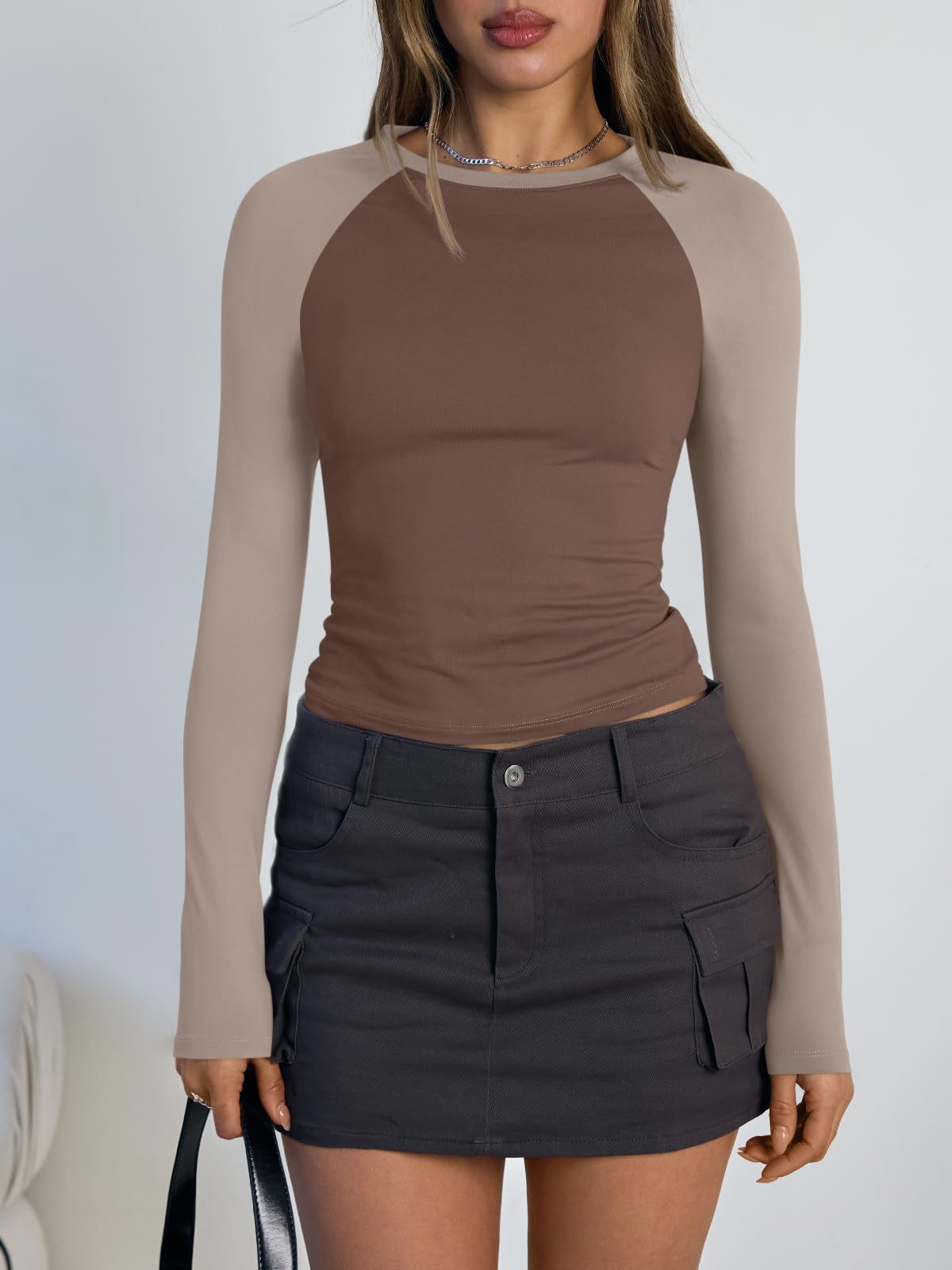 This trendy long-sleeved t shirt will have you looking your best wherever you go. With its perfect fit and cute contrasting neckline and sleeves, this top is the perfect way to stay casual while looking super cute.