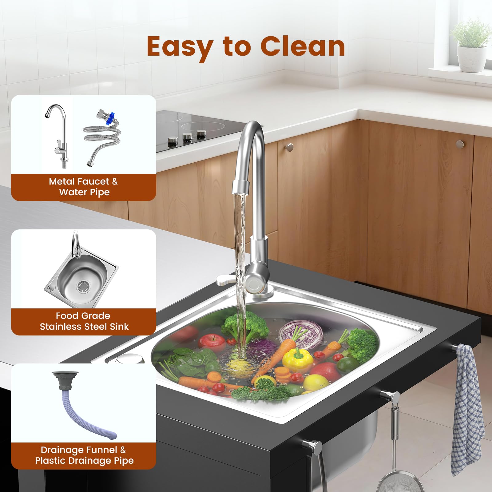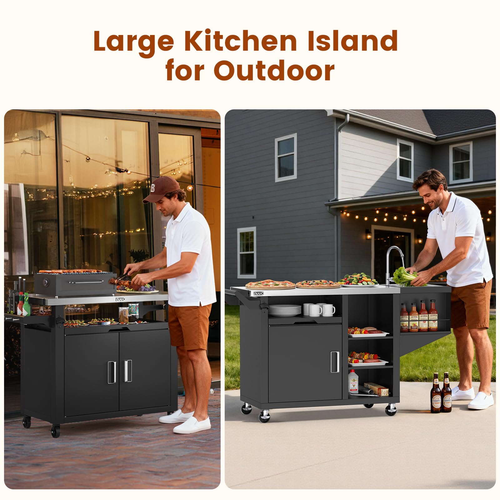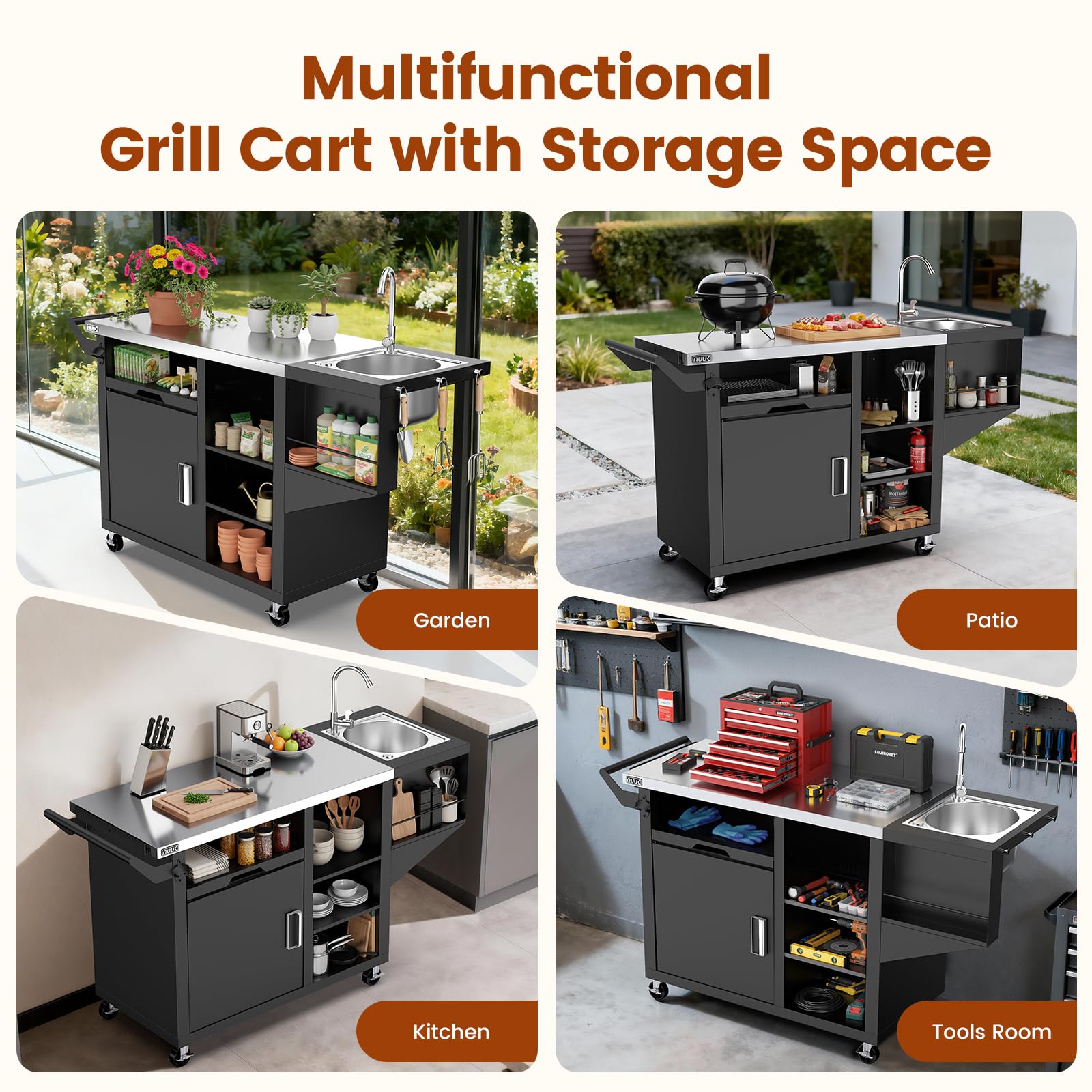 More Than Just a Grill Table Station - This isn't just for grilling. It's a complete outdoor workstation. It includes a faucet, a food-safe stainless steel sink, a drainage system, a bottle opener, and other handy accessories. Use it outside, in your garage, or even as extra storage and counter space indoors.