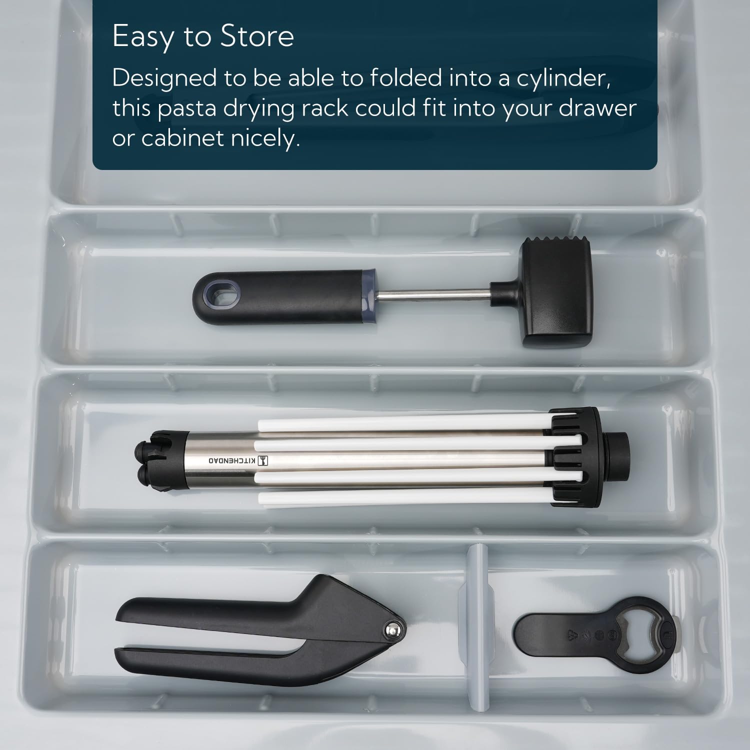 Compact for Easy Storage: This pasta dryer rack is collapsible for easy storage. It saves space and fits nicely in the drawer or cabinet