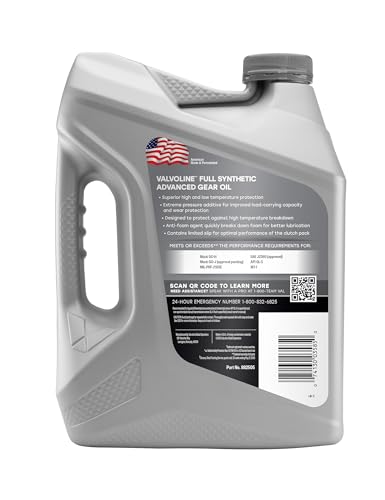 Valvoline Advanced Full Synthetic 75W-90 Gear Oil provides enhanced performance in hypoid rear differentials and non-synchronized manual transmissions. With 1.5X stronger extreme pressure protection, 1.5X better gear wear protection and 30% better protection against towing and heavy loads vs. Valvoline Daily Protection 75W-90 in ASTM D-7452, it’s a must-have in severe service situations and demanding environments, including off-roading. Featuring superior-quality additives like limited slip for optimal clutch pack performance and an anti-foaming agent for improved lubrication, the full synthetic formula also boasts excellent high temperature performance, thermal stability and oxidation resistance. It’s recommended for conventional rear axles and non-synchronized manual transmissions requiring extreme pressure gear lubes under high torque, high speed, high load and high horsepower conditions. From everyday driving to heavy hauling, Valvoline Advanced Full Synthetic 75W-90 is a go-to gear lubricant for high pressure performance and durable, smooth, reliable shifts. Upgrade to Advanced Full Synthetic from Valvoline, the #1 gear oil brand.