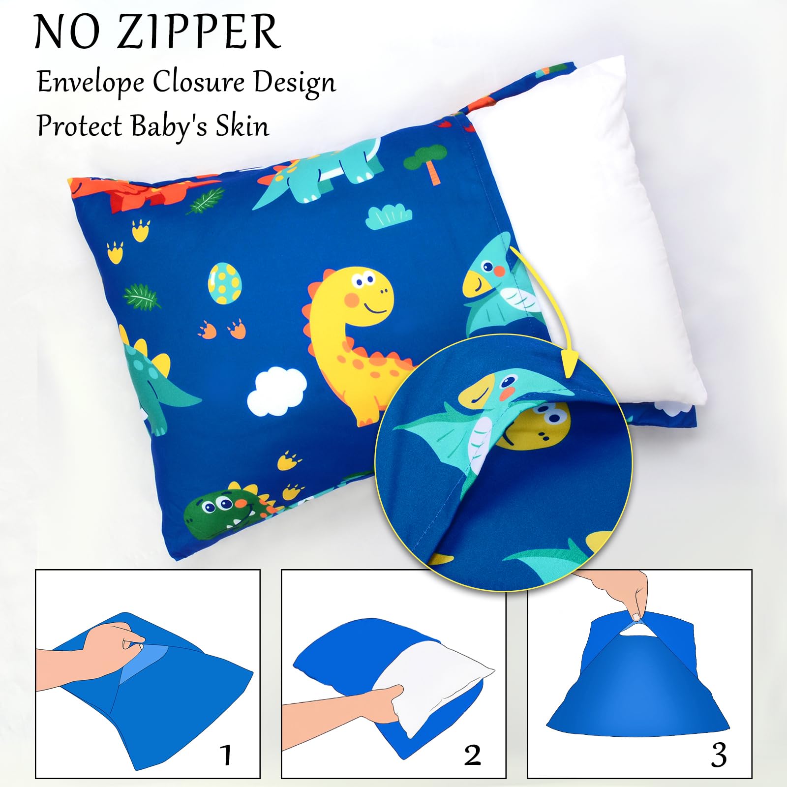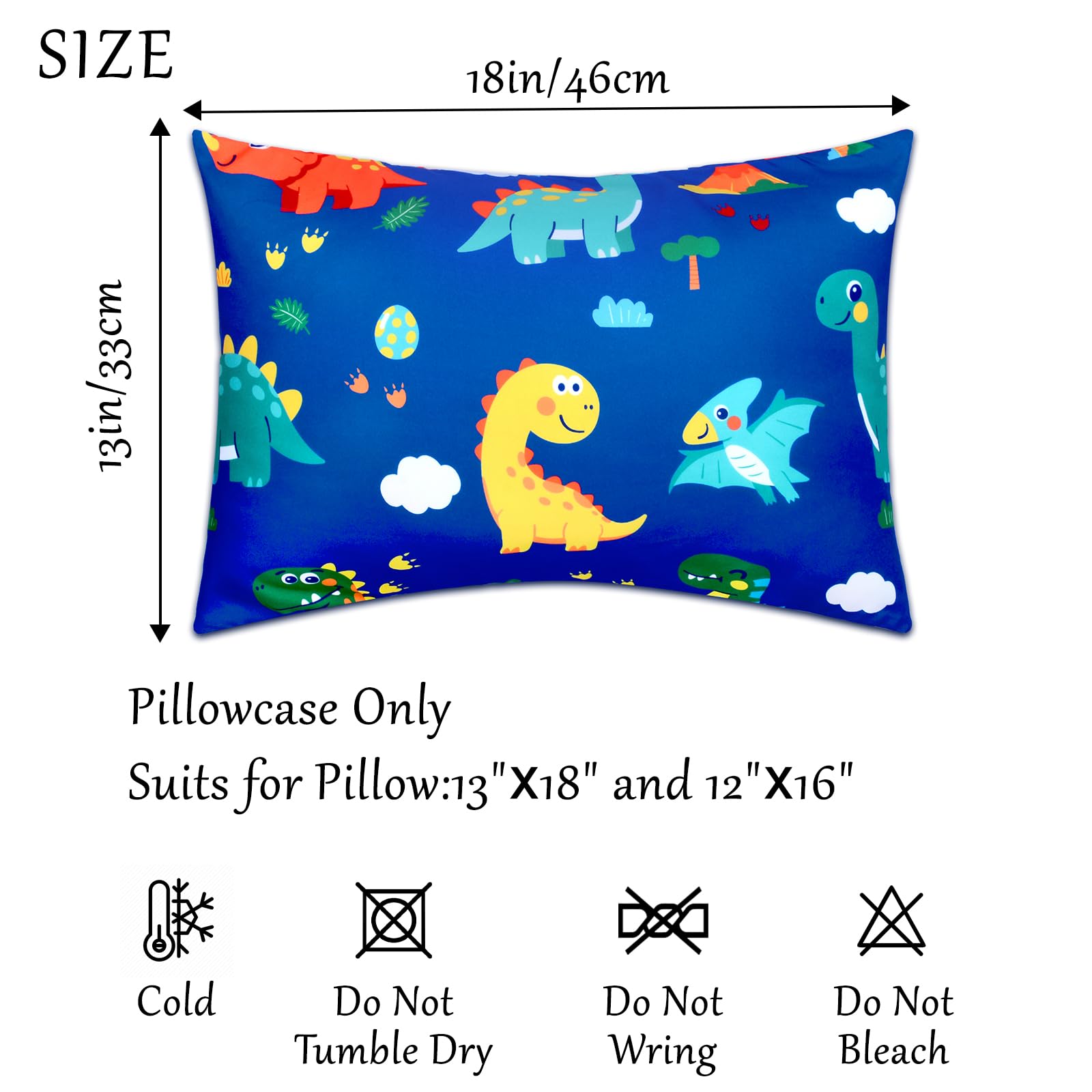 【ENVELOPE CLOSURE DESIGN】The back of the dinosaur pillowcase adopts an envelope design without a zipper.That means your child won't be hurt.And the pillow won't fall out anyway and easily to put in or take out pillow.