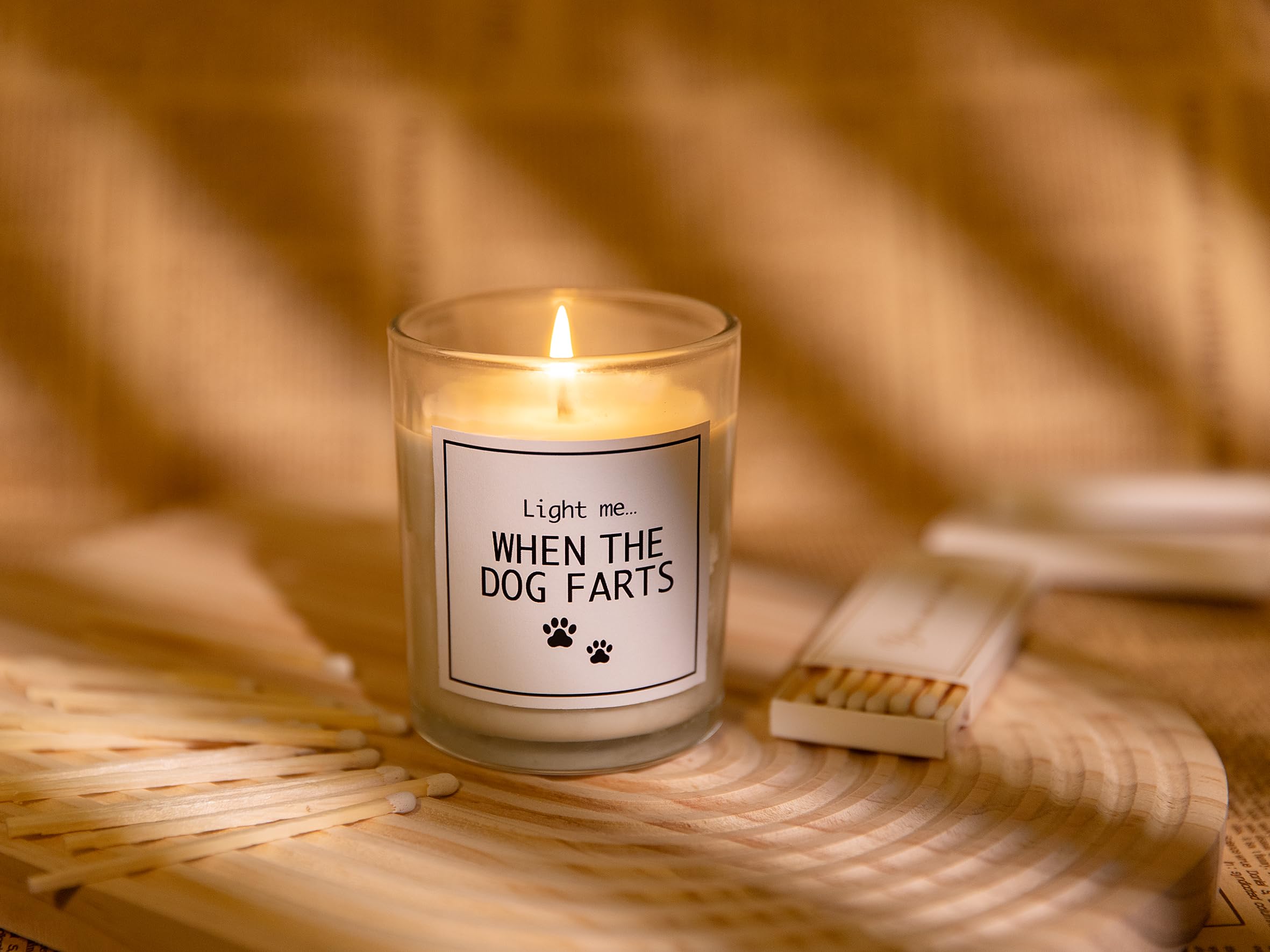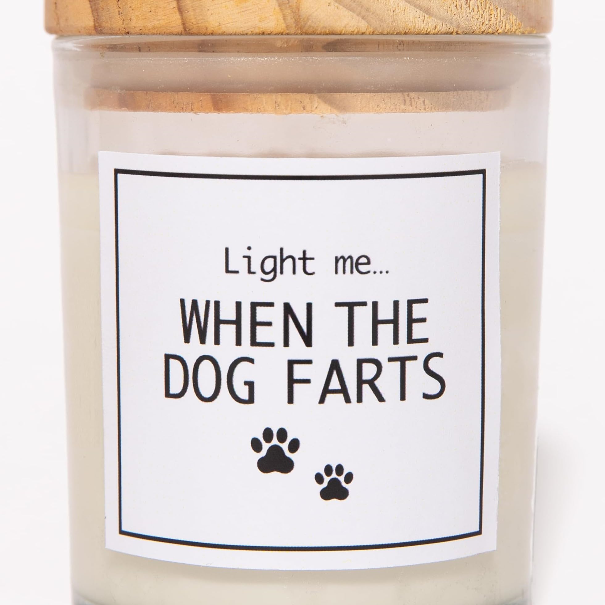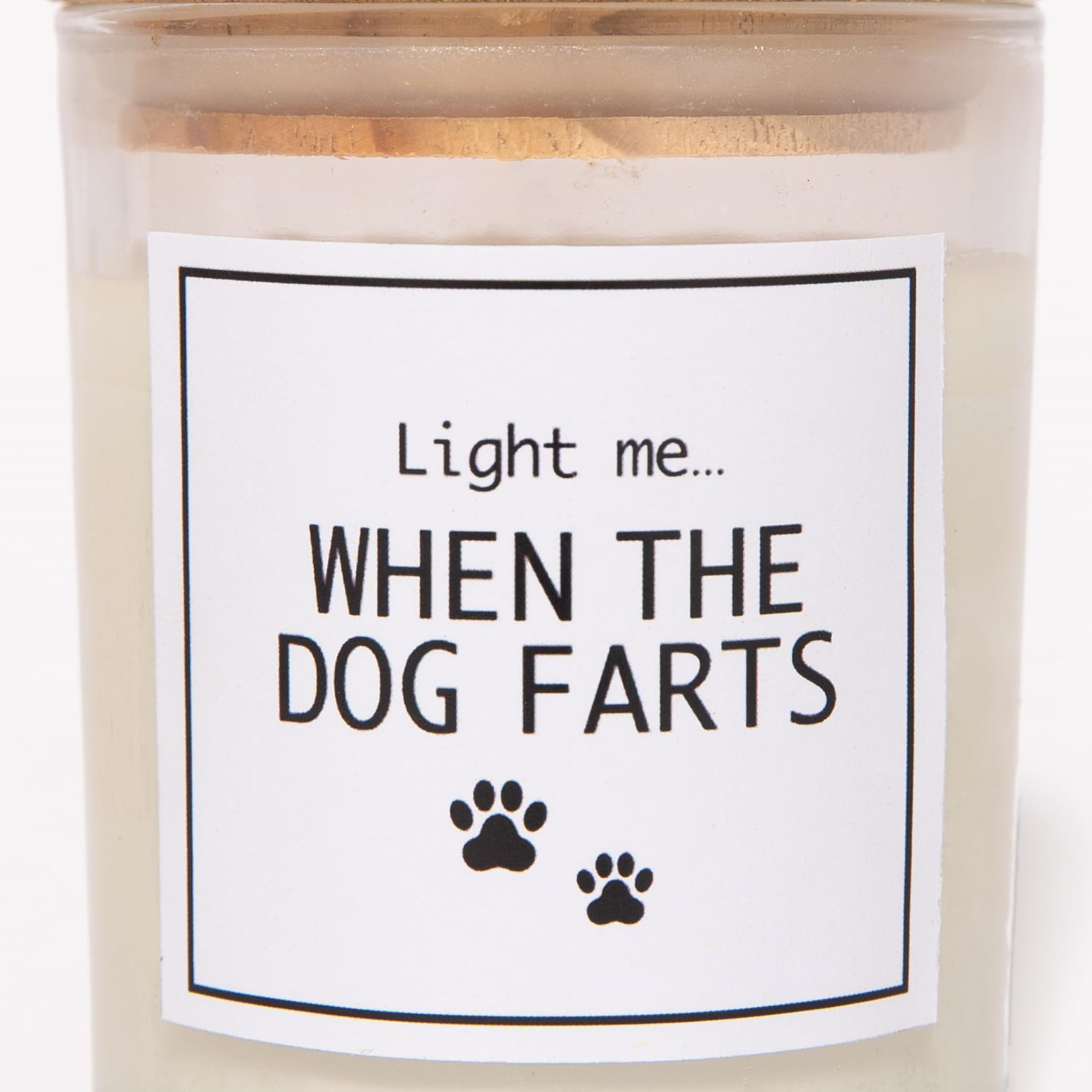 Funny Dog Gifts - This pet friendly scented candle is an ideal gift for dog lovers or dog owners! Light me when dog farts, the funny text adds a sense of humour to your gift and is the perfect gift for fur mums, dog mums, BFF's, best sisters, work friends, long distance friends, vets or anyone who works with pets or your wife, mother, brother, uncle, cousin, grandmother, grandfather and friends who are fostering or adopting fur babies who will love it and have a good laugh!