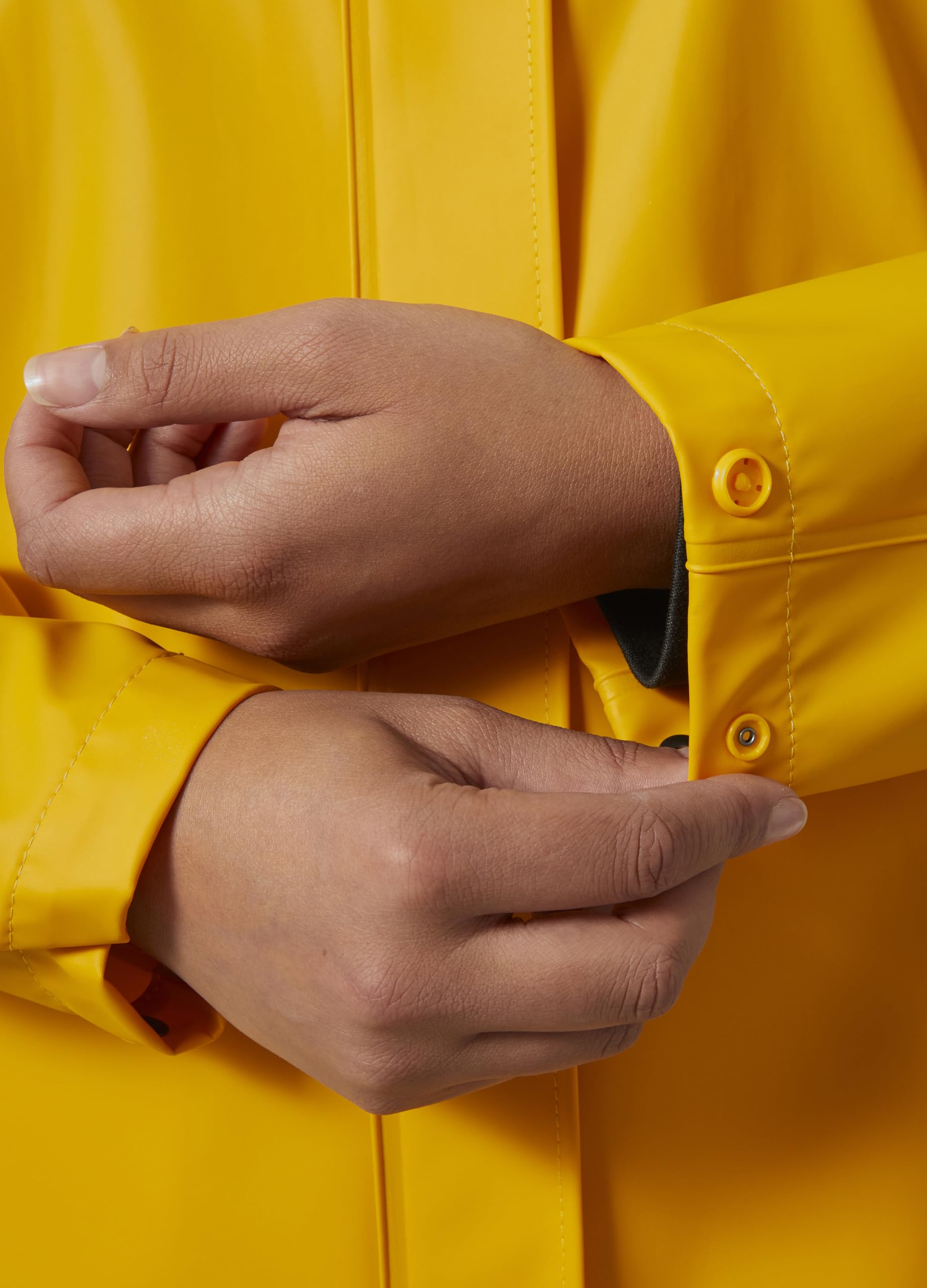 Description We borrowed inspiration from the 1950s Helly Hansen fisherman's raincoat to create this 100% waterproof, retro-style, rain jacket. You stay dry while looking good. The back has vents, so it’s breathable as well as windproof.
