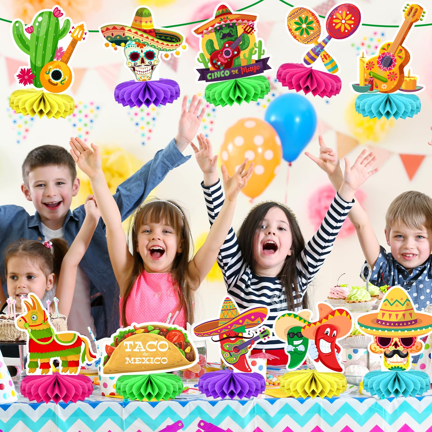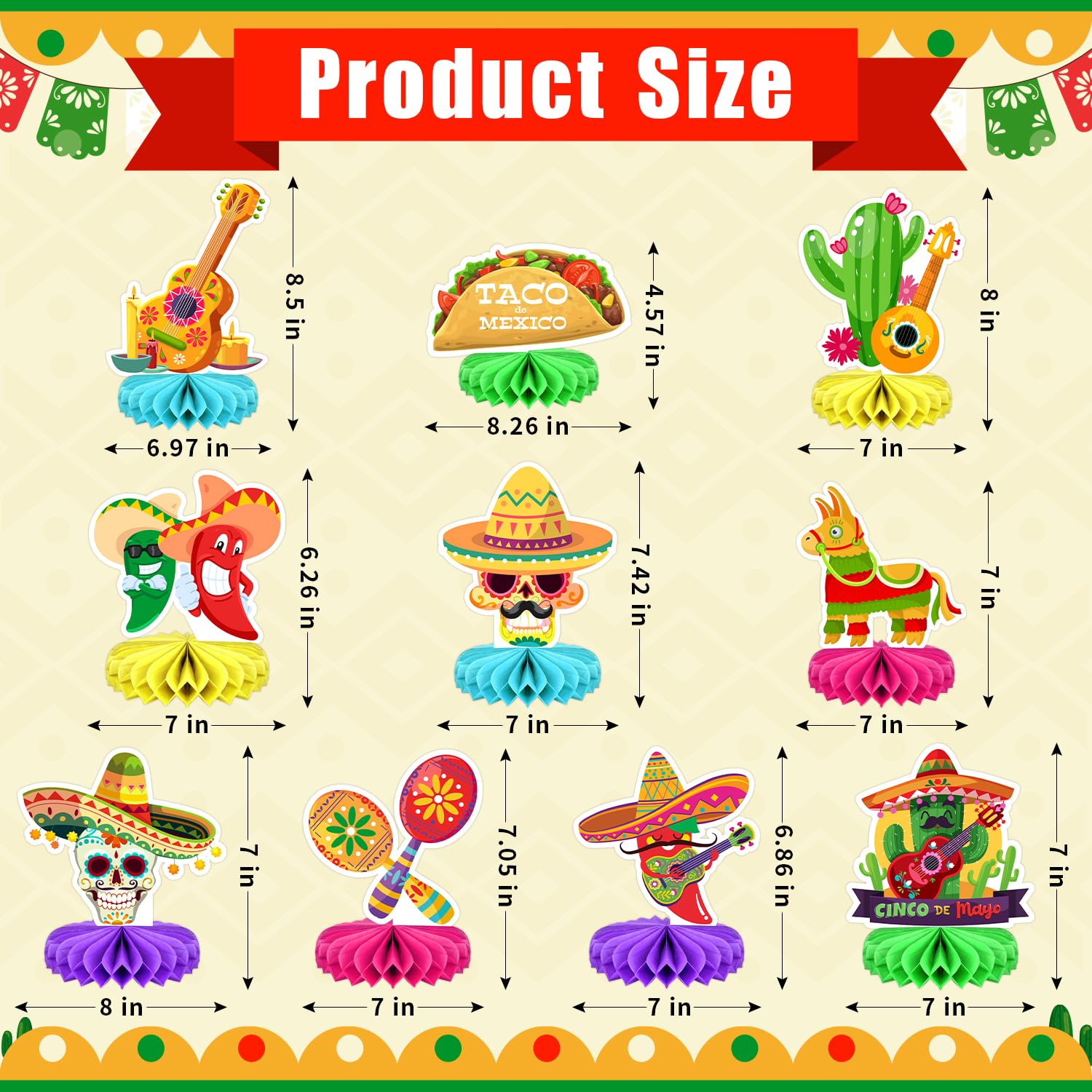 🌮【Cinco De Mayo Decorations】These fiesta party decorations with 10 cute fiesta related pattern designs, such as taco, cactus, guitar, maraca, and skull. These Cinco De Mayo decorations has fun cartoon design and different colors honeycomb base that are enough to attract the attention of your friends or family, making your Mexican themed party decorations more impressive