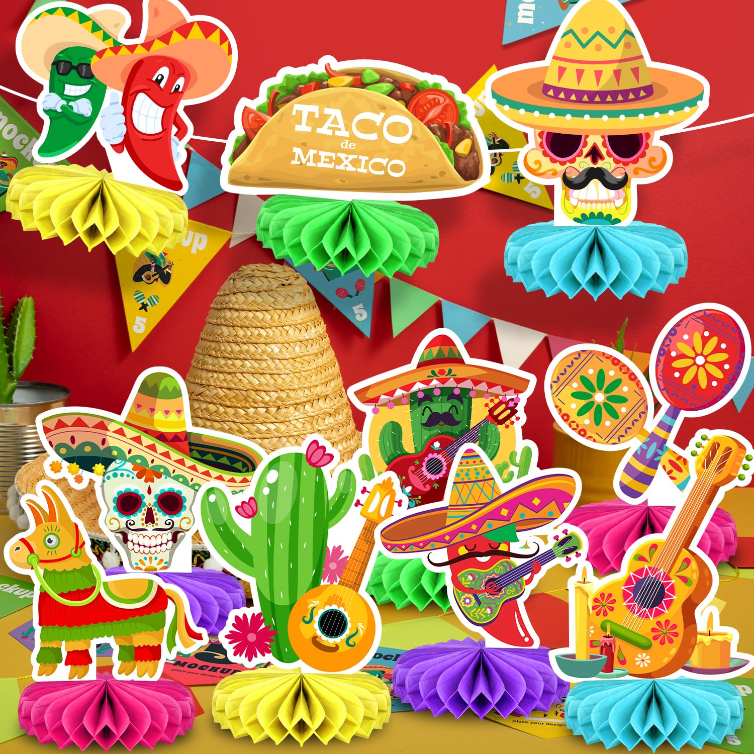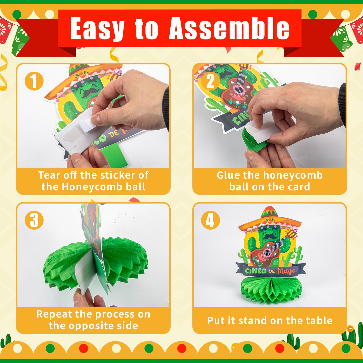 🌵【Easy to Assemble】The Mexican fiesta honeycomb table centerpiecesare is very simple to assemble. You just need to tear off the sticker of the honeycomb ball, and then stick the honeycomb ball to a fixed area on the card, next step is unfold the honeycomb orb and stick it. This exquisite and beautiful Mexican decorations for party can easily stand on your dining table
