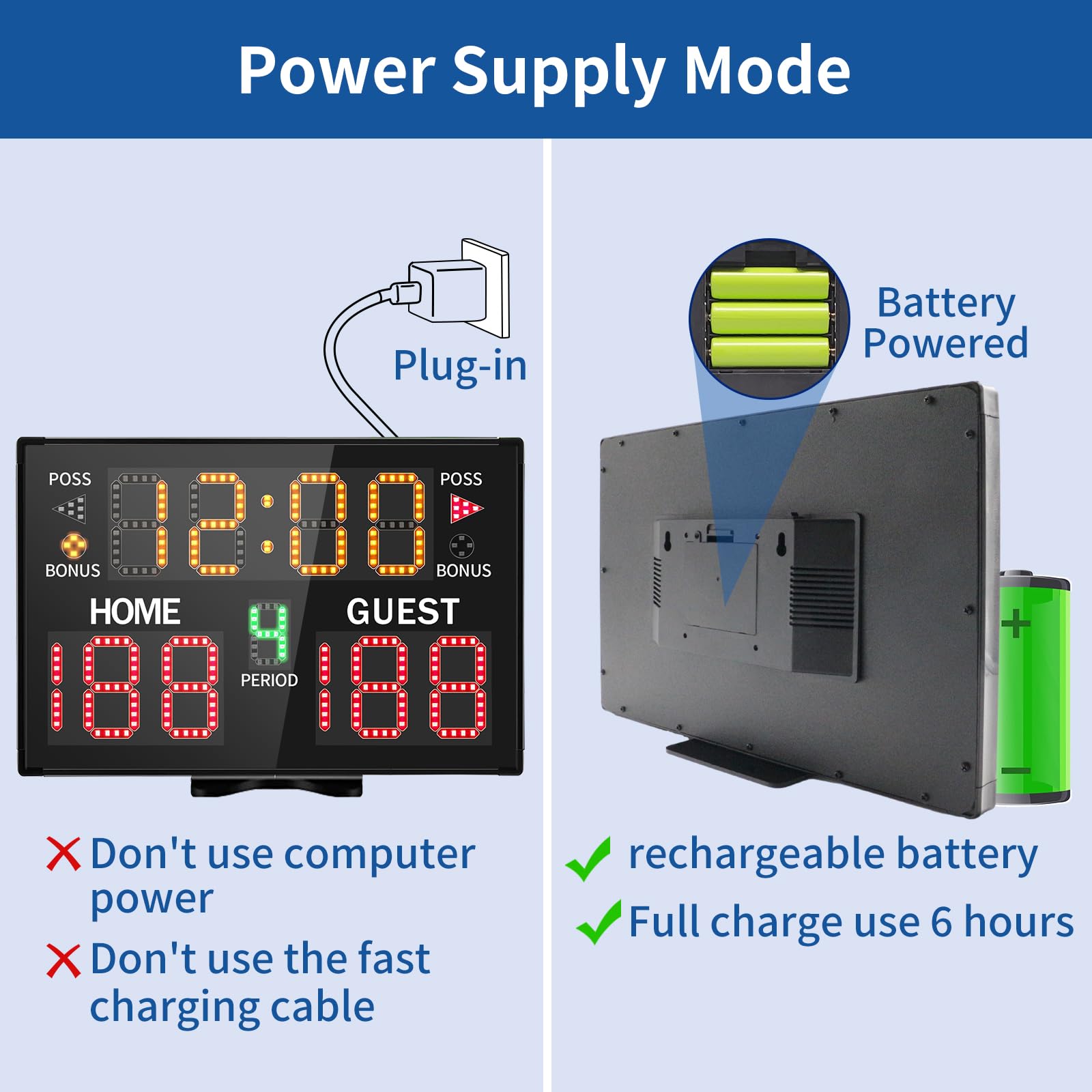 Multifunction:Clock countdown from 99:59,and scores to 199,includes period,bonus,and possession indicators