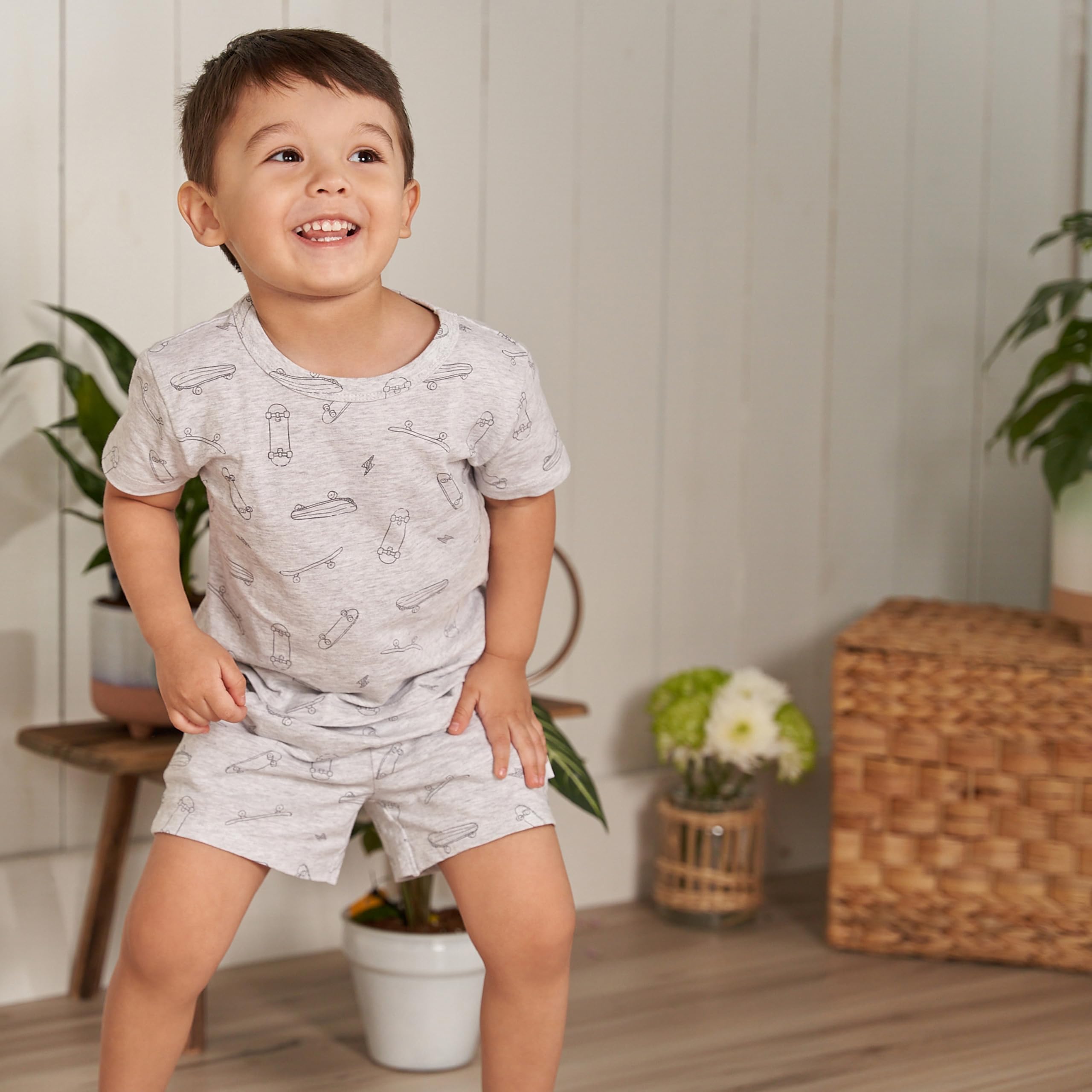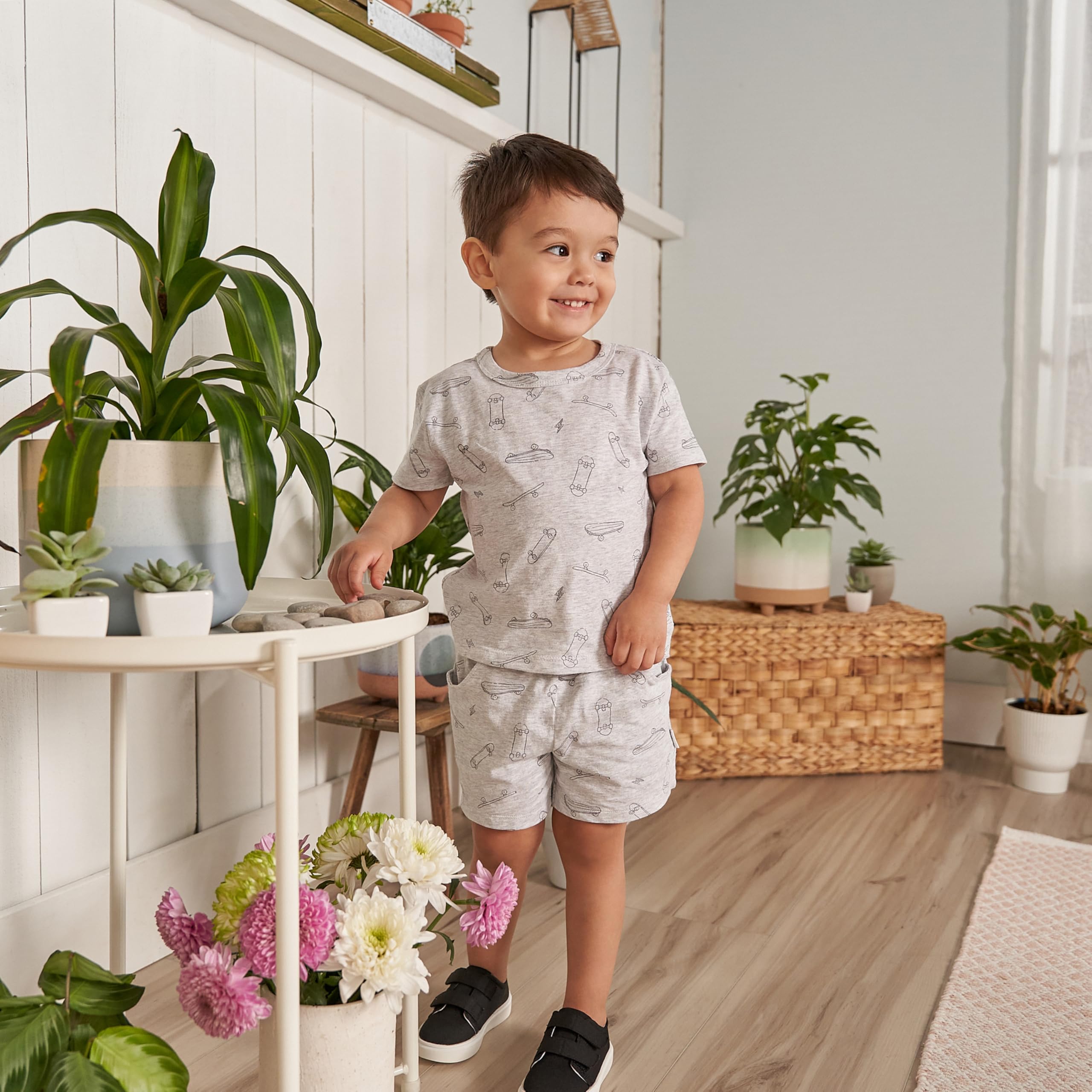 Description Get your toddler boy ready for sunny adventures with this T-shirt and shorts set. Crafted primarily from cotton with spandex for a comfortable stretch, it's the perfect outfit he'll want to keep on all day. Whether it's playdates or running errands, this toddler boy outfit combines the best of style and comfort for wherever the day takes you. With its soft, inviting texture and adorable pattern, he'll look cute and feel great. And with easy machine washing for stress-free care, it’s simple to keep this outfit ready all season long.