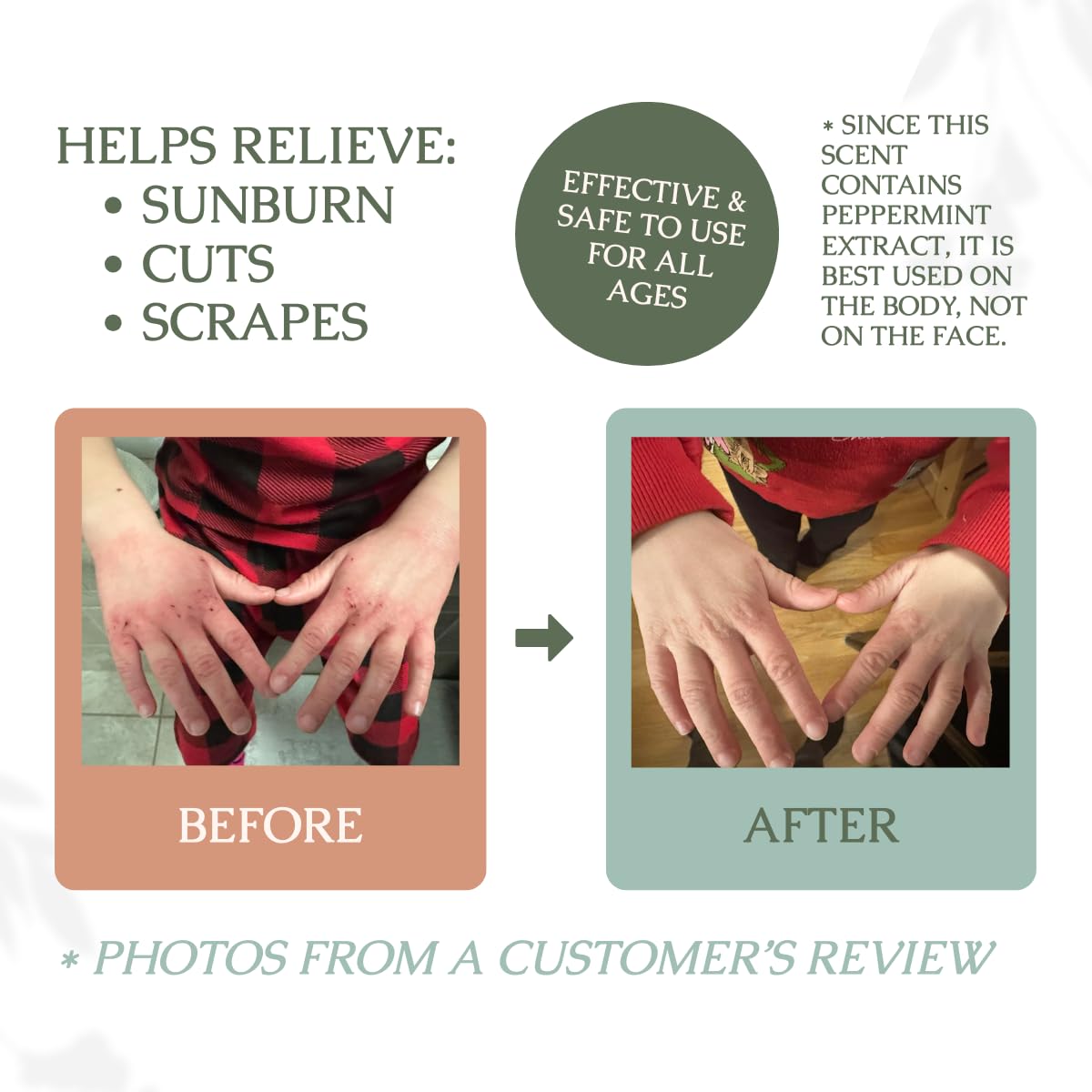 YOUR GO-TO BALM: Lavender peppermint balm is our favorite go-to balm for cuts, scrapes, and cooking burns or sunburn. Not for facial use (peppermint feels chilly).
