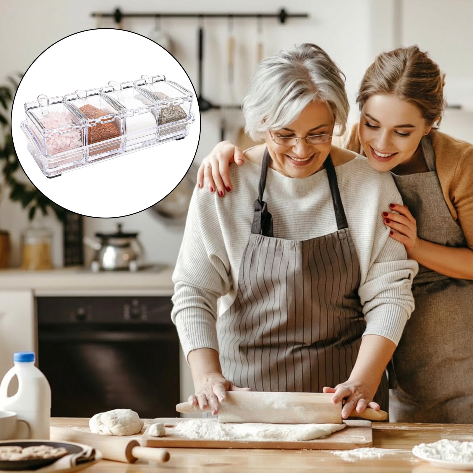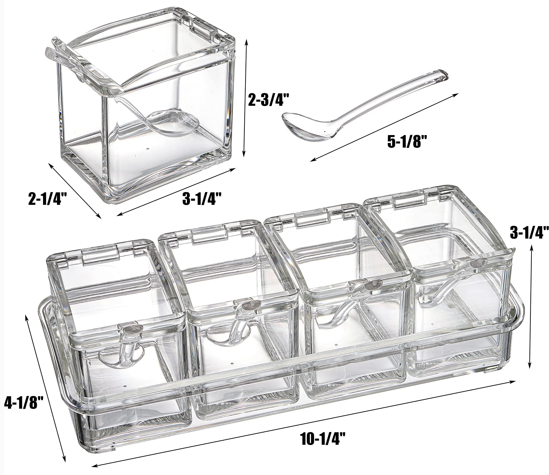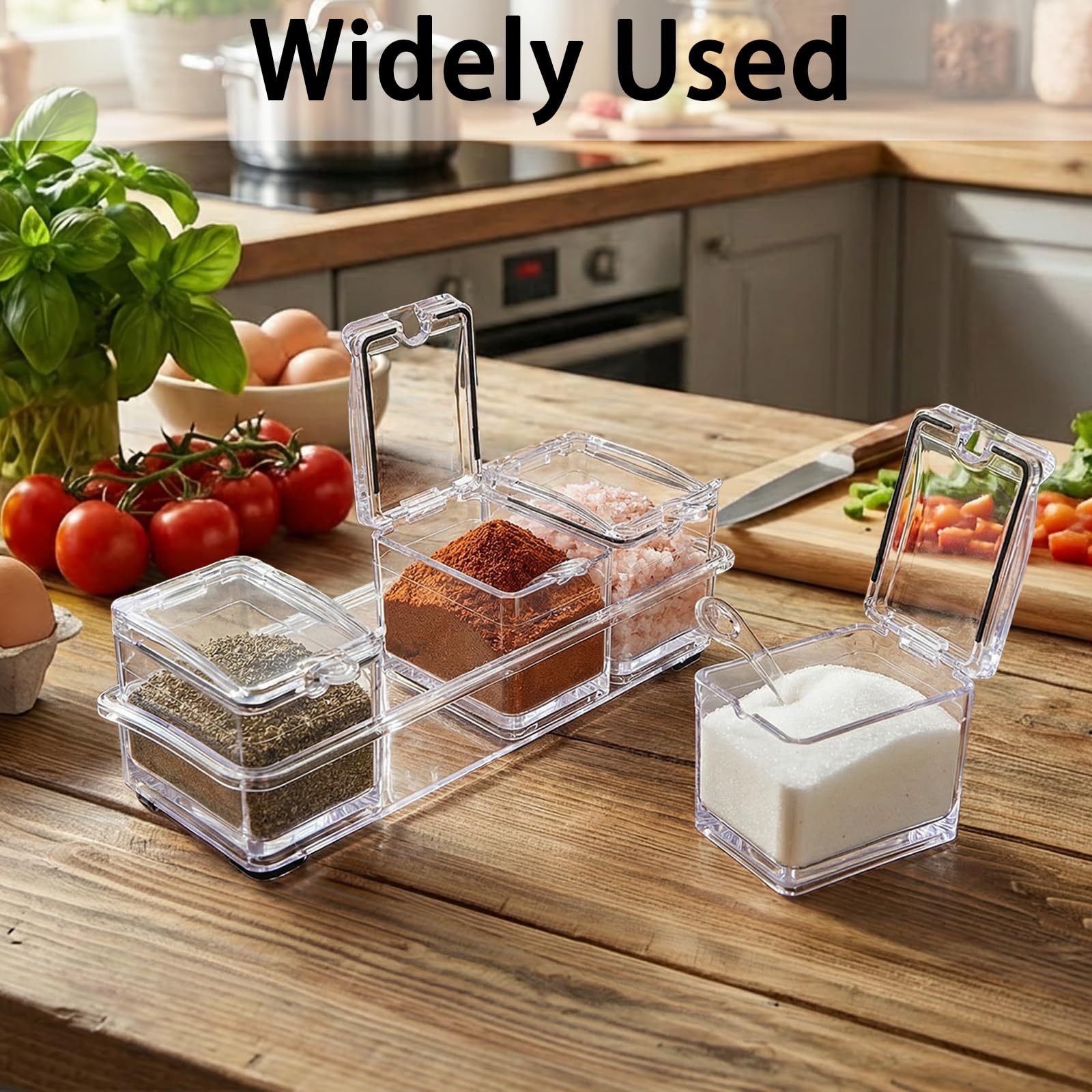 Can be used to hold a variety of condiments: pepper, sugar, salt, spice, chicken broth powder, corn starch etc. Clear spice jar set can easily distinguish variety of condiments in the seasoning box.