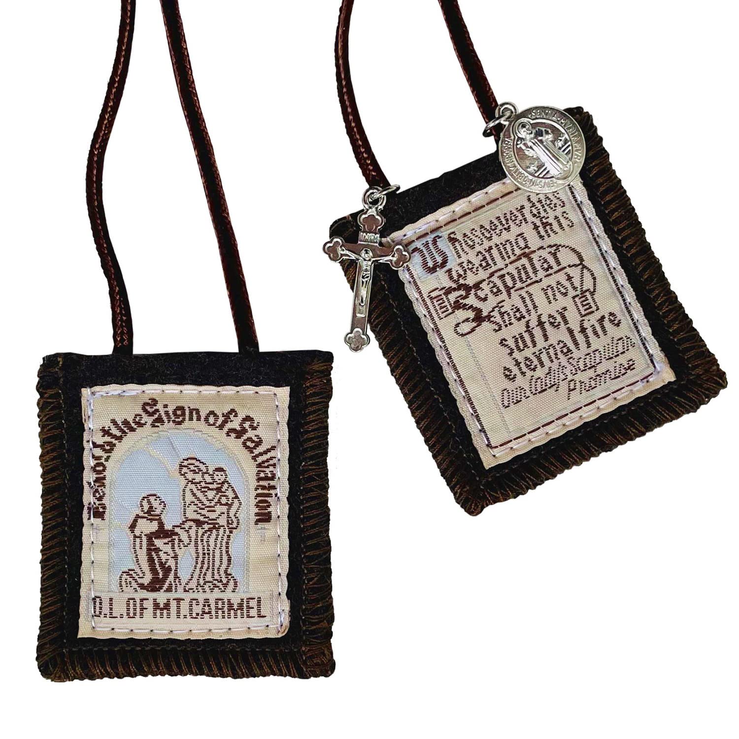 Beautiful Decor: The brown scapular, made of soft and durable wool and featuring holy subjects and saints, adds a touch of spirituality to your car's interior. Consider adding a brown scapular decor your collection of Saint Jude, St. Joseph, our lady of fatima, virgin mary, blessed mother mary, St. Michael the Archangel, mary magdalene, Sacred Heart of Jesus, Our Lady of Guadalupe, la Santa Muerte statues. And decor wall crosses, kitchen wall, mexican decor etc..