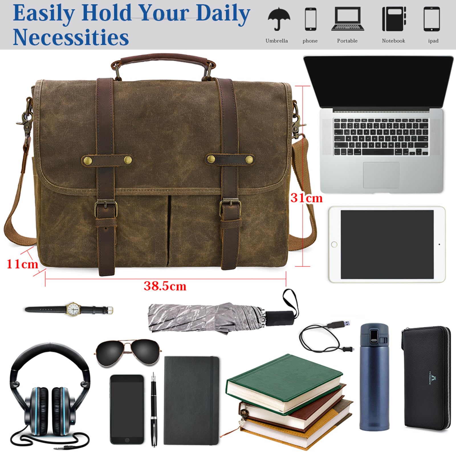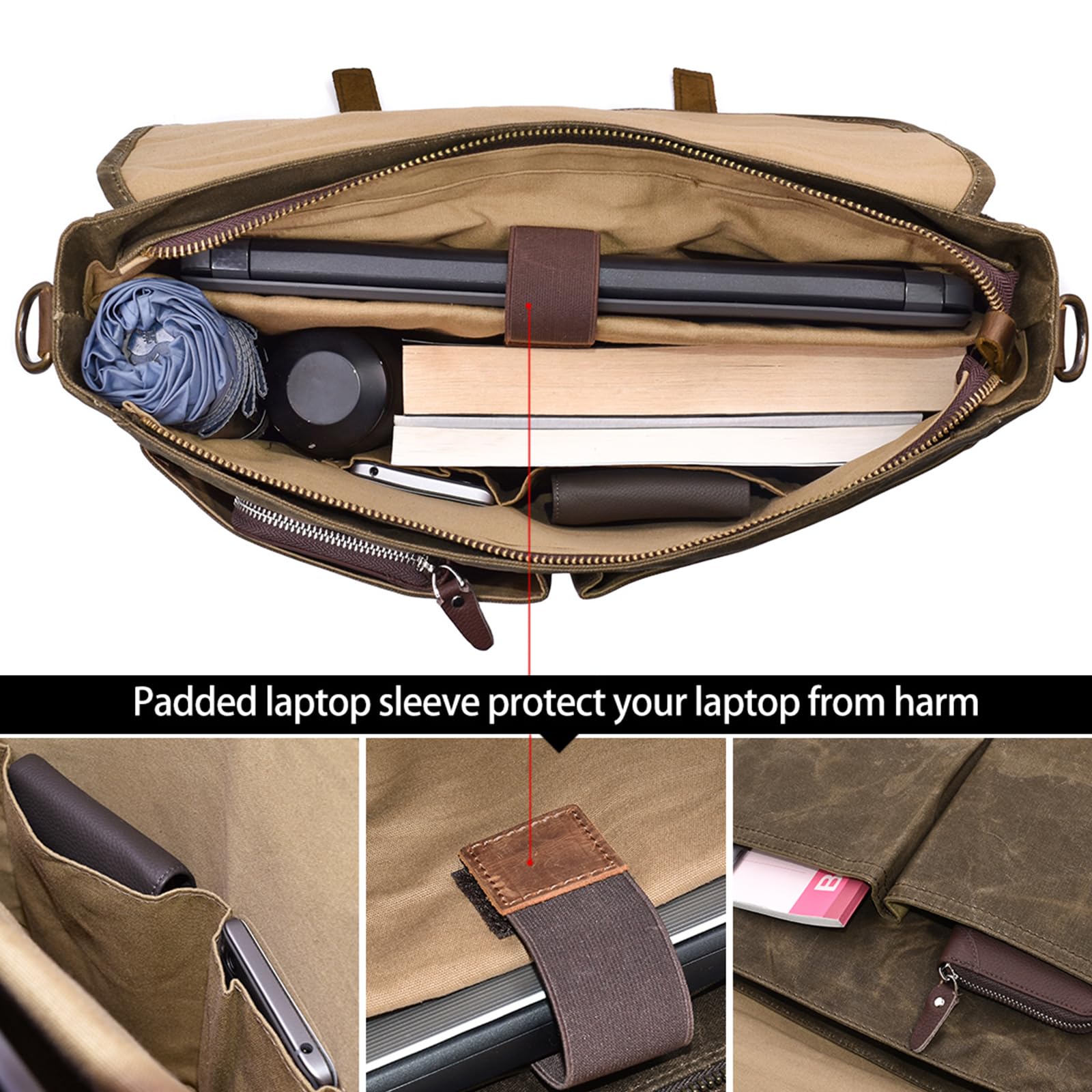 REMOVABLE & ADJUSTABLE STRAP: Shoulder strap of canvas messenger bag is detachable and can be adjusted at the most suitable length. Padded handle and strap are also helpful to ease your fatigue.