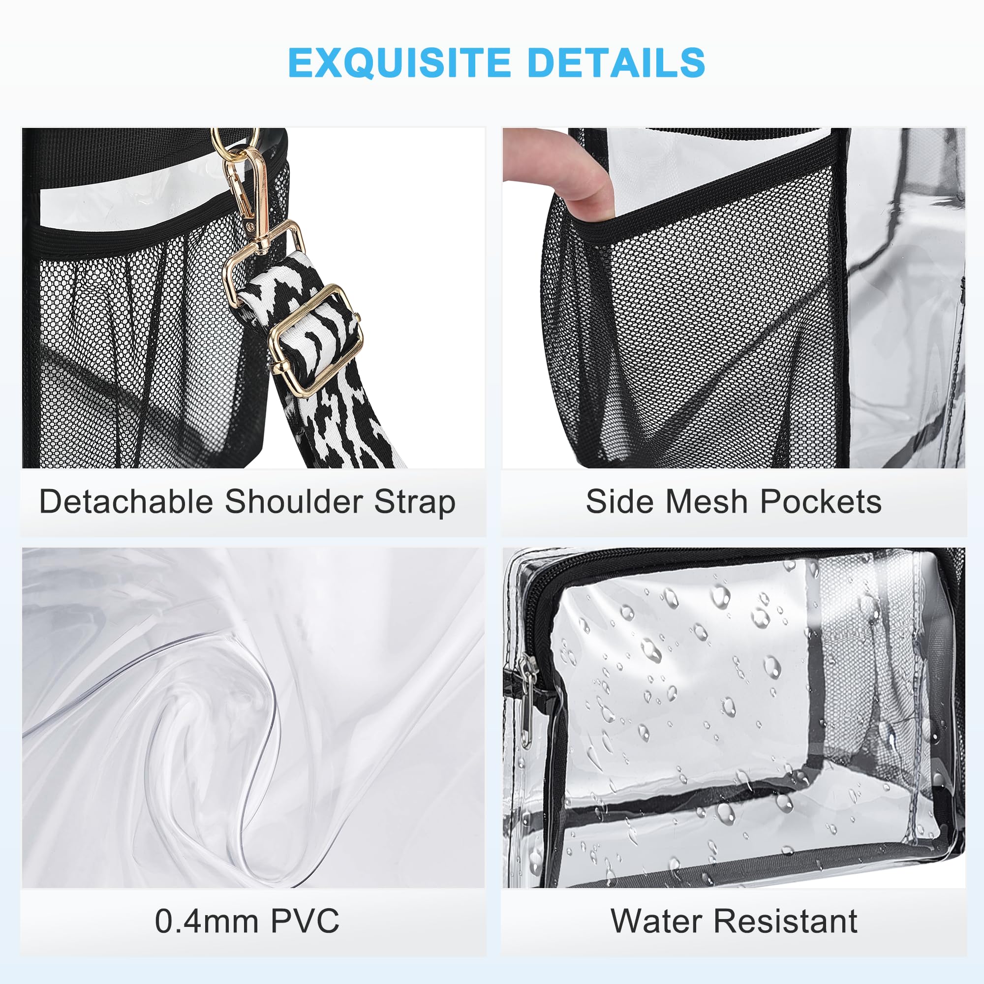 【Water Resistant】The PVC material makes this clear bag water-resistant. No more worries of a sudden rain or splashing water. Easy to be cleaned for next use.