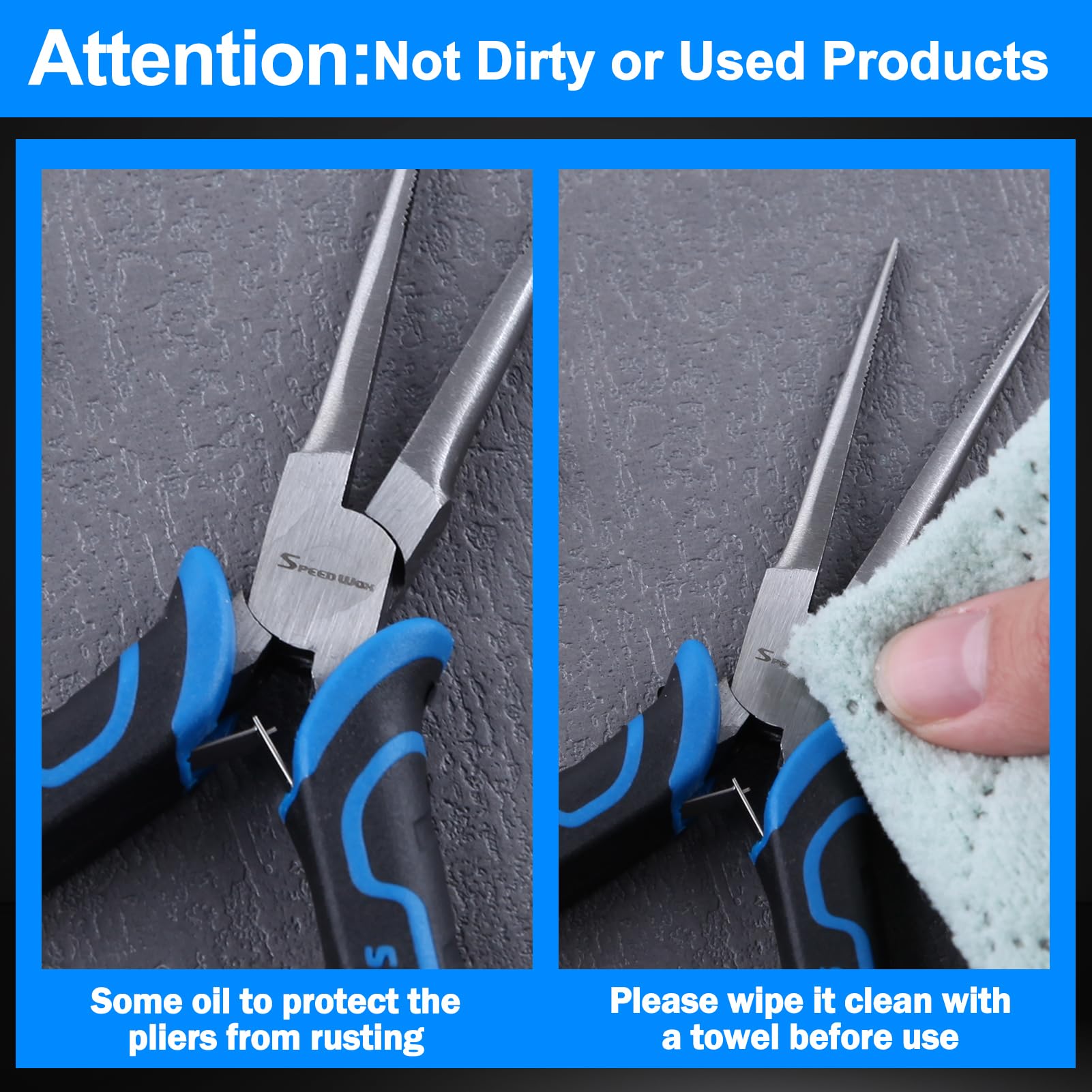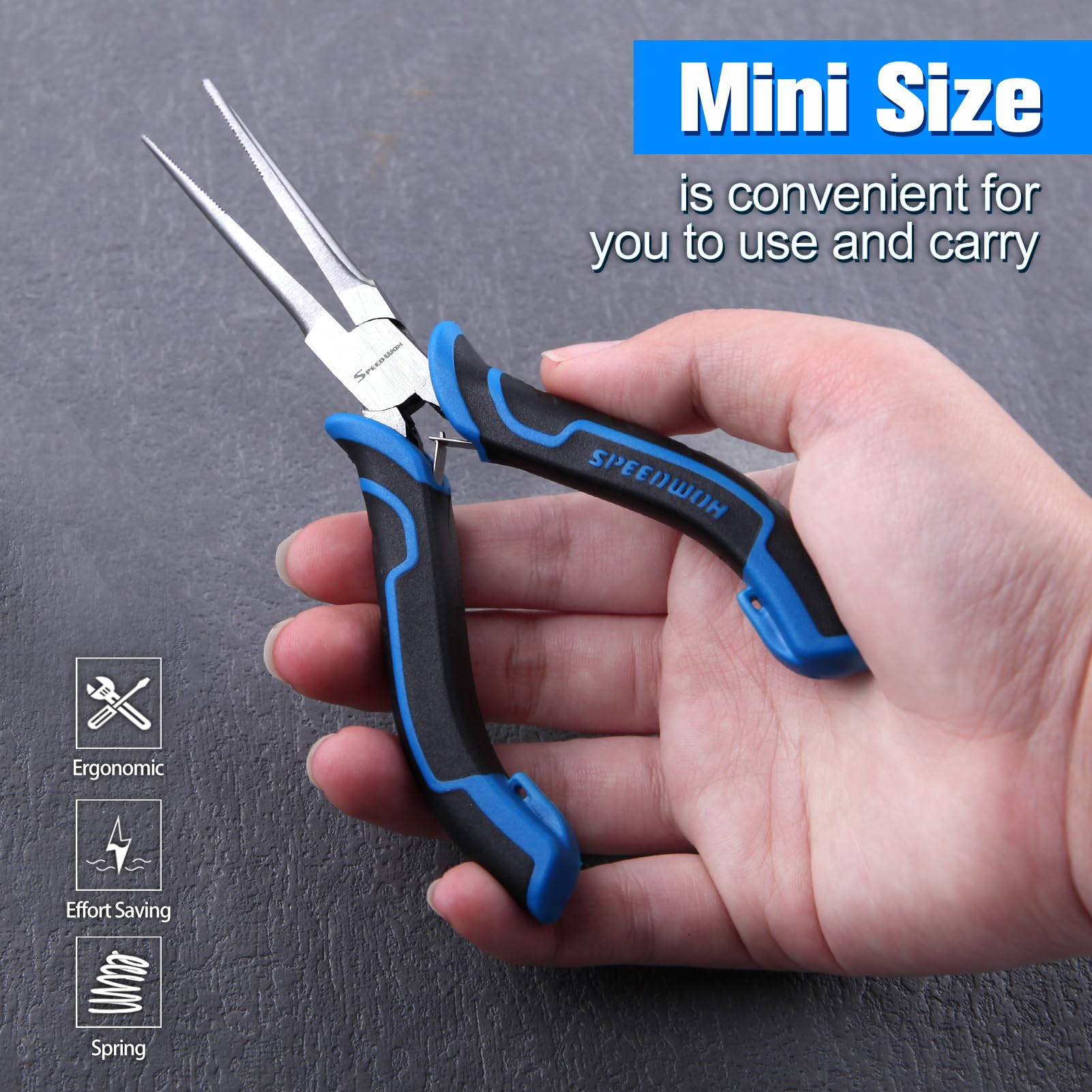 【APPLICATION】Needle nose pliers with long taper jaws, can effortlessly grip and release small items, suitable for bending wire, jewelry making, computers maintenance, electronics repair, small object gripping ect. Thin-tipped extra long needle nose pliers ideal for confined areas.