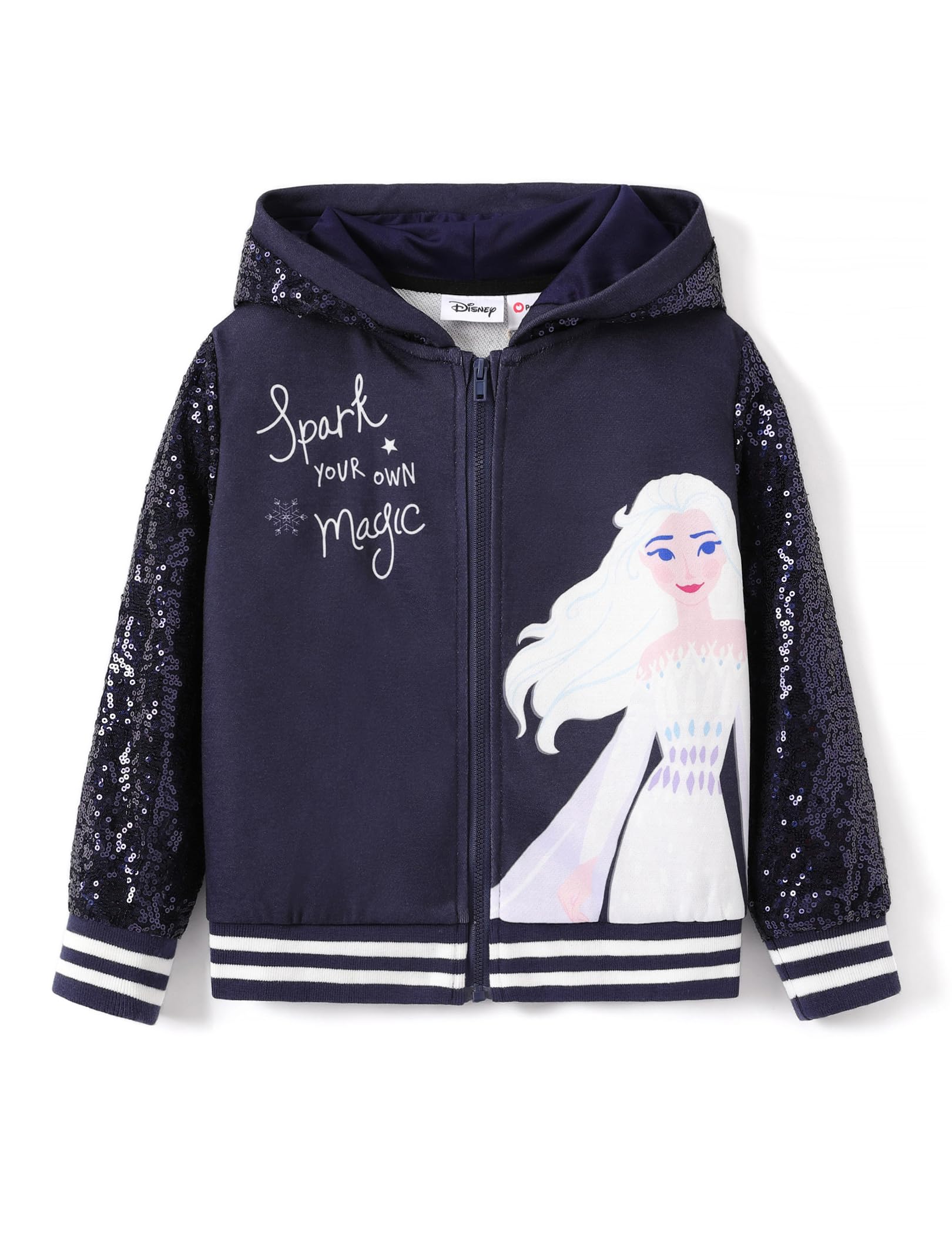 Charming & Unique Designs:This Frozen jacket features a vibrant, oversized print of Elsa or Anna, capturing her icy charm in a fun and stylish way. The sleeves and hood are adorned with sparkling sequin accents, adding a touch of shine to cooler days. The full-zip design ensures easy on-and-off wear, while the cozy hood provides extra warmth and comfort. Perfect for layering during fall and winter, it’s a must-have for fans of Frozen outfits for girls